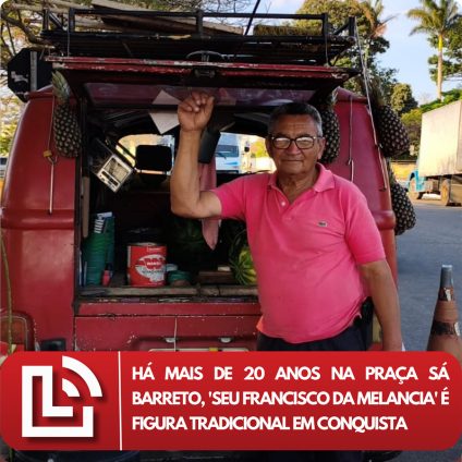 Nascido em Itororó, Seu Francisco se considera um cidadão conquistense de coração e está em processo para receber o título oficial da cidade que adotou para viver e trabalhar. Foi no mesmo ponto, na Praça Sá Barreto, que ele, com a venda de melancias, alimentou e educou sua família.