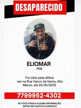 Qualquer informação que possa levar ao paradeiro de Eliomar é de grande importância para a família. Quem tiver alguma notícia pode entrar em contato imediatamente pelo telefone: (77) 99952-4302.