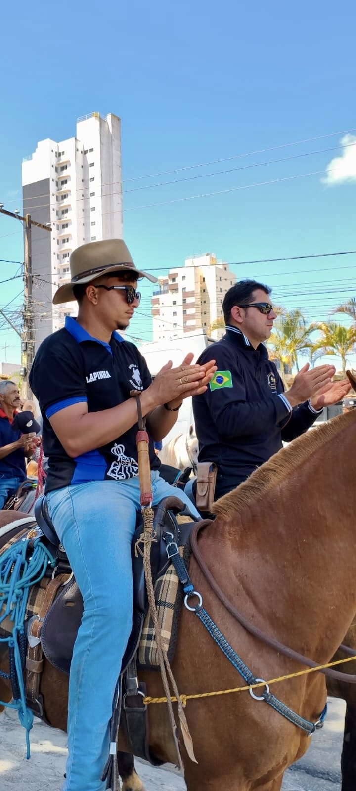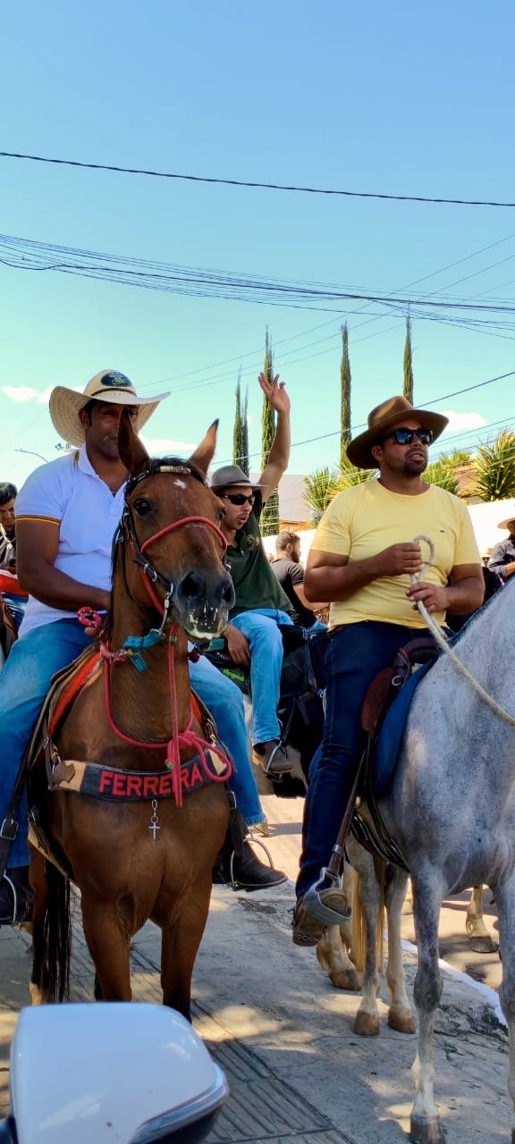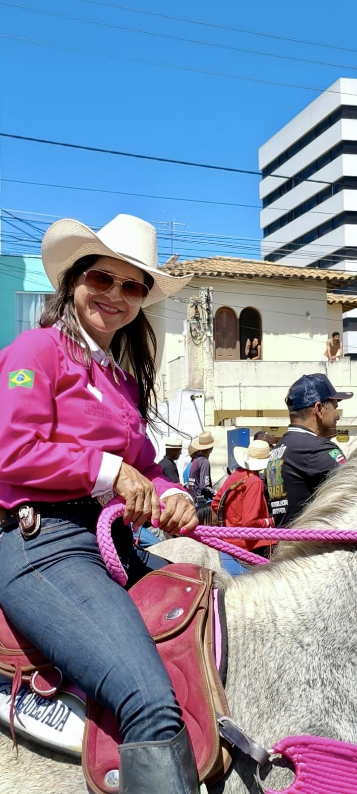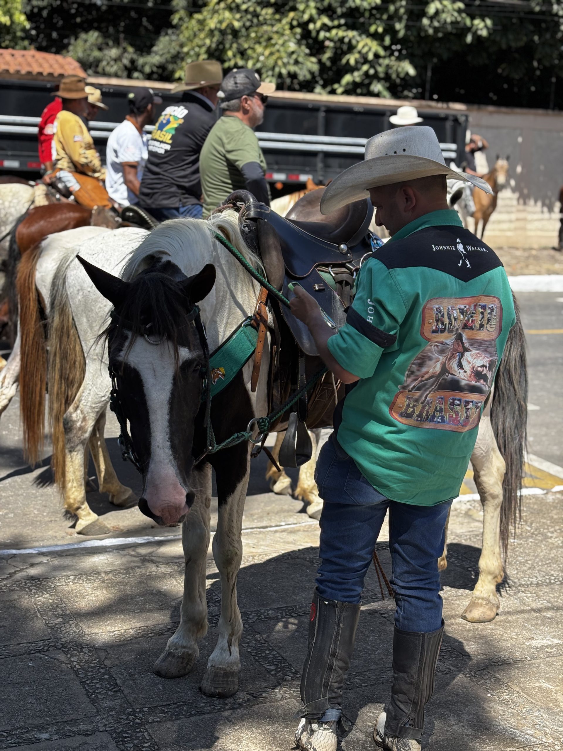 A frente do cortejo era liderada por um trio elétrico, comandado pelo vereador Luís Carlos Dudé, idealizador do evento. Logo atrás, uma multidão de vaqueiros montados em seus cavalos seguia em direção ao Parque de Exposições Teopompo de Almeida, onde a programação festiva continua ao longo do dia.