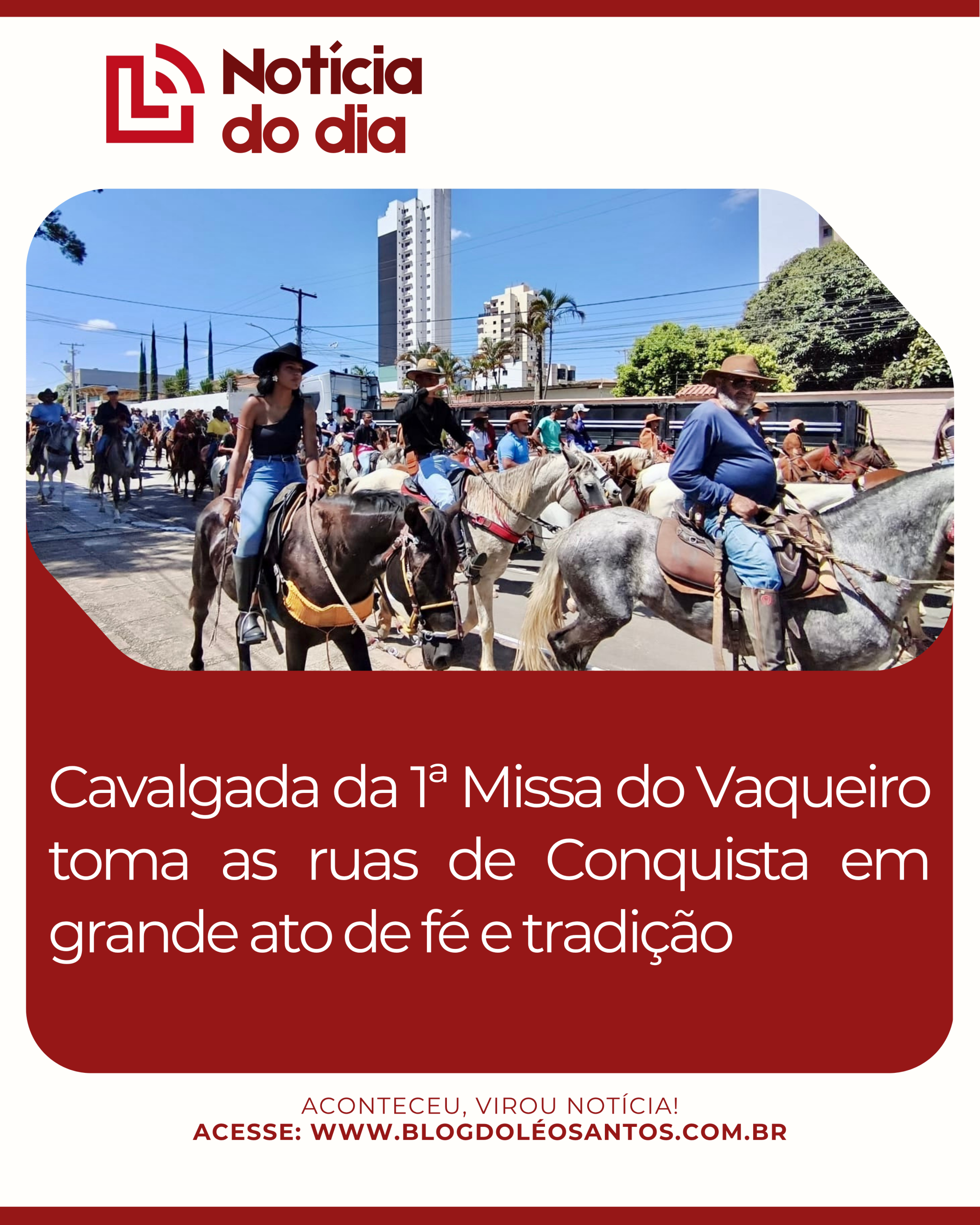 Após a emocionante celebração da 1ª Missa do Vaqueiro aos pés do Cristo de Mário Cravo, uma grande cavalgada tomou as ruas de Vitória da Conquista na manhã deste sábado (01). O ato, que faz parte das comemorações do aniversário da cidade, reuniu um grande número de cavaleiros e amazonas em uma bela demonstração de fé e amor pela cultura sertaneja.