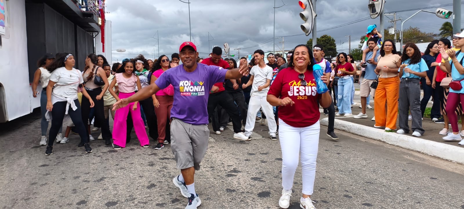 Animados por um trio elétrico, os fiéis saíram da Avenida Integração e seguiram em cortejo até o Centro de Convenções Glauber Rocha.