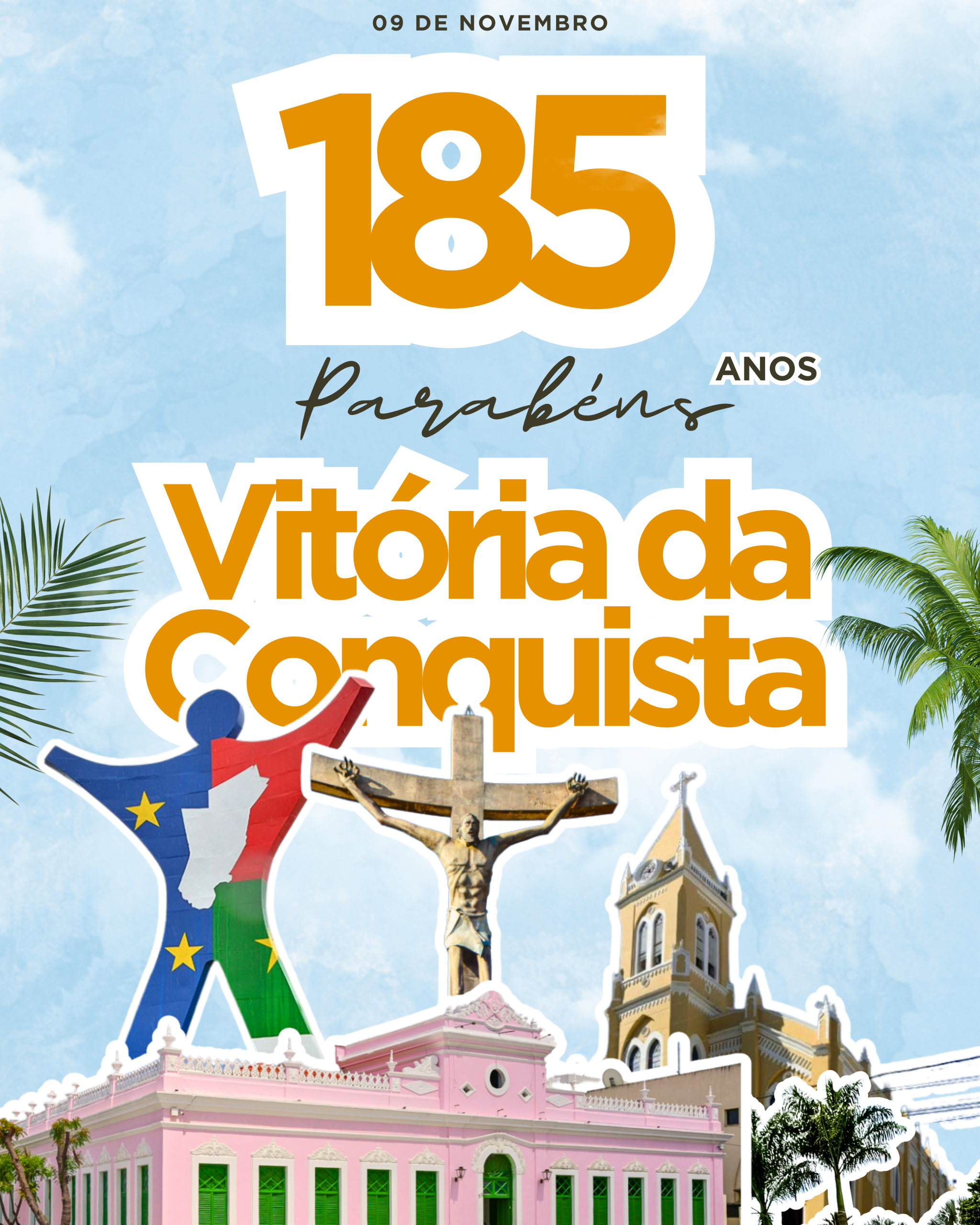 Neste 9 de novembro, o Blog do Léo Santos se enche de orgulho para parabenizar nossa amada Vitória da Conquista por seus 185 anos de história!