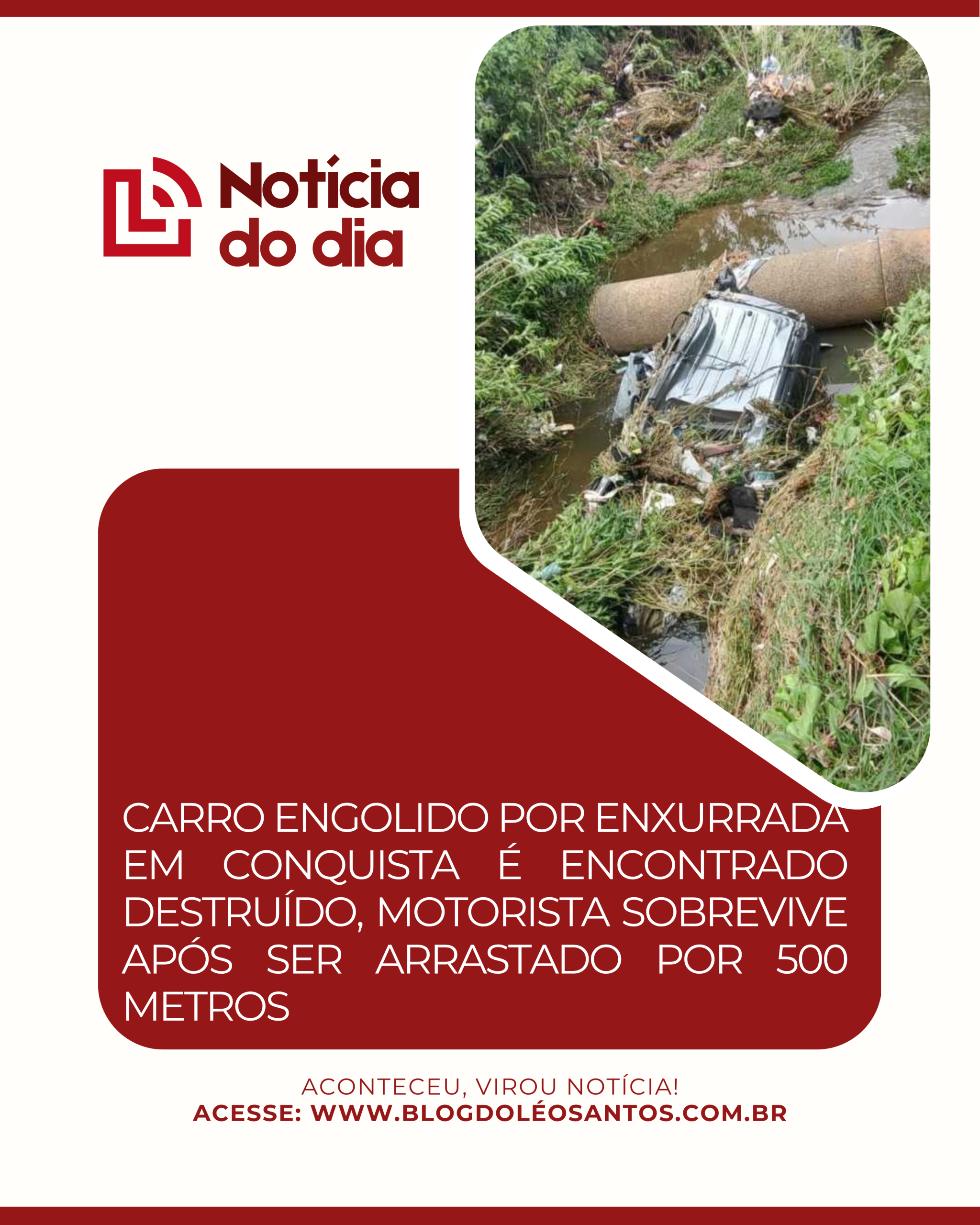 O motorista, identificado como Gerald, estava dentro do veículo quando foi tragado pela correnteza. Em um verdadeiro milagre, ele sobreviveu após ser arrastado por aproximadamente 500 metros dentro da valeta.