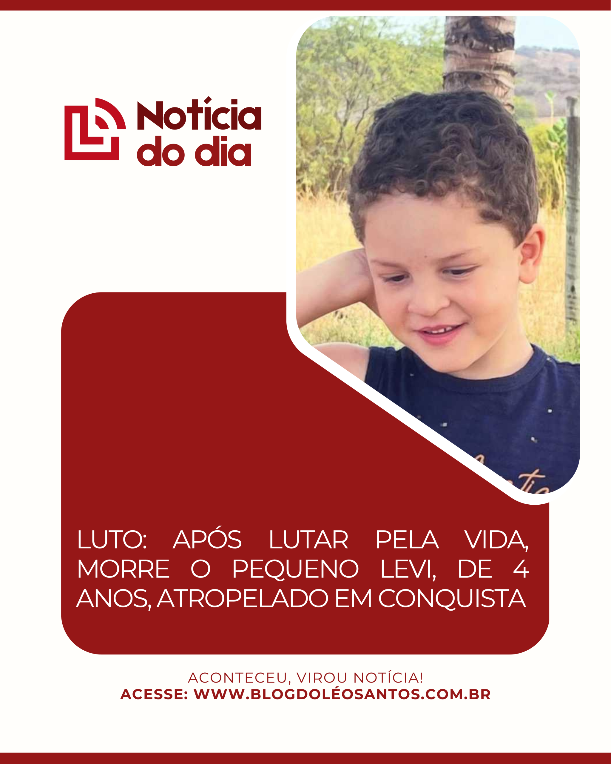 Uma notícia de imensa tristeza para Vitória da Conquista. O pequeno Levi, de apenas 4 anos, morreu na tarde desta quinta-feira (13), no hospital onde estava internado.