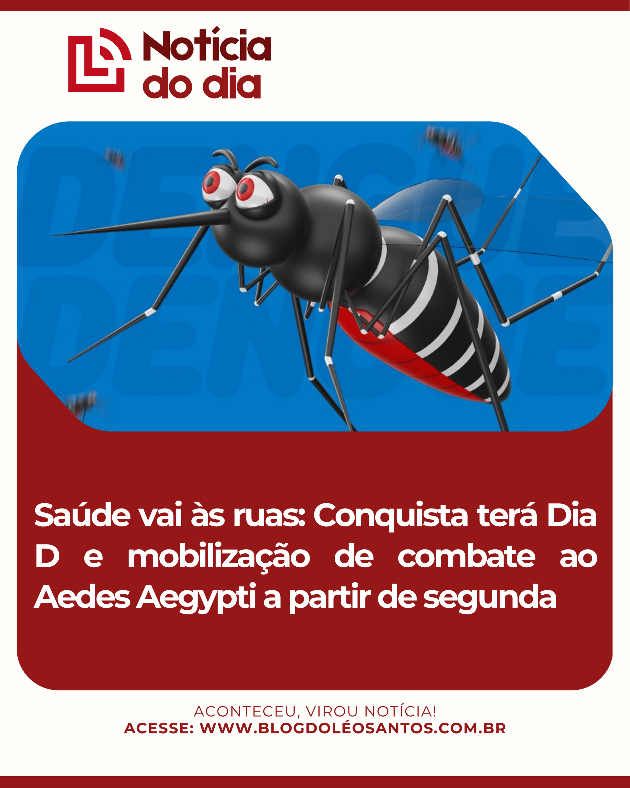 A Secretaria Municipal de Saúde (SMS) de Vitória da Conquista anunciou uma grande mobilização focada no combate ao mosquito Aedes Aegypti, que transmite doenças como dengue, zika e chikungunya. As ações ocorrem entre os dias 17 e 19 de novembro.