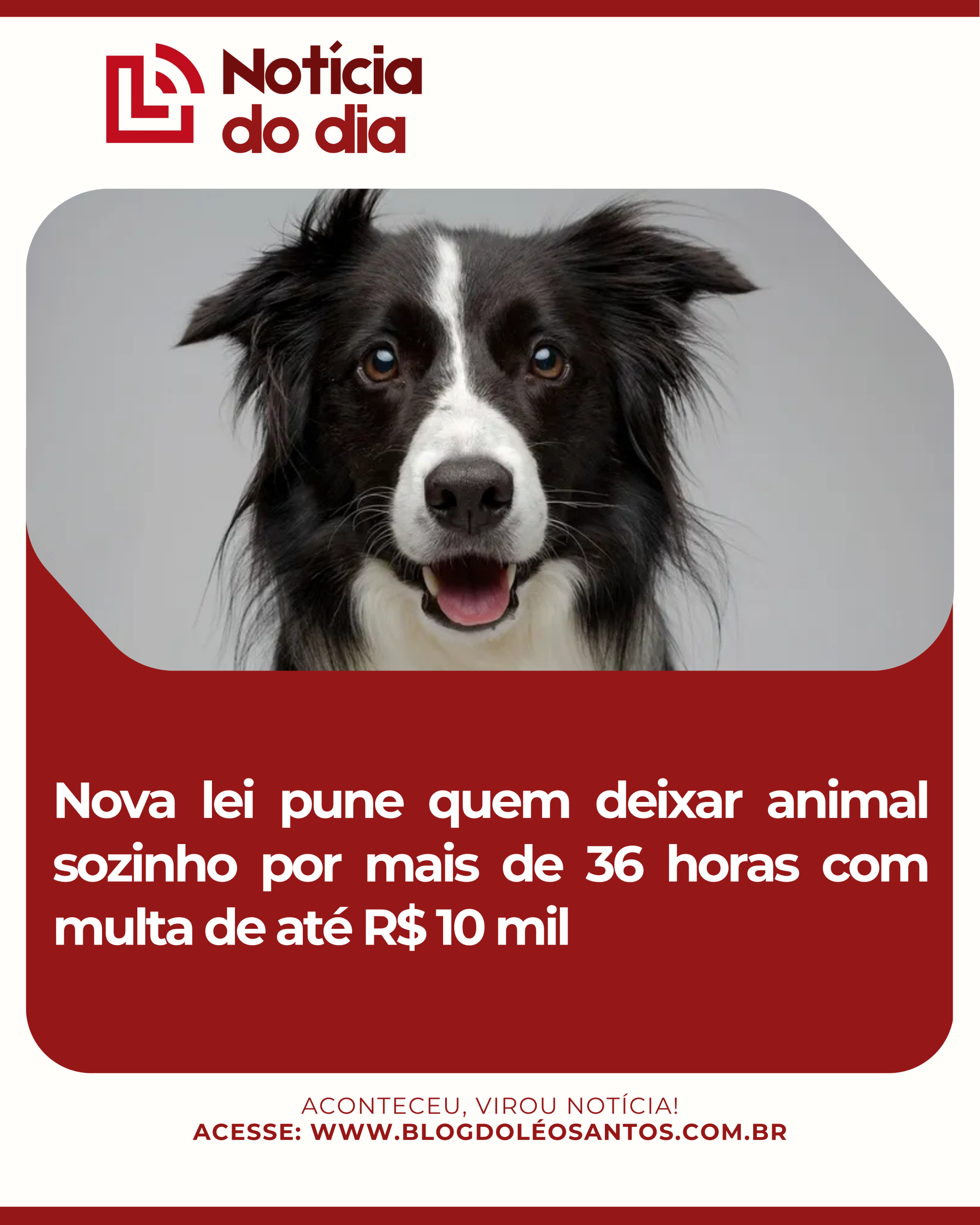 A cidade de Santos, no litoral paulista, adotará regras mais rígidas para coibir o abandono de animais domésticos. Foi aprovado um projeto de lei que prevê multa de até R$ 10 mil para quem deixar cães ou gatos sozinhos por mais de 36 horas.