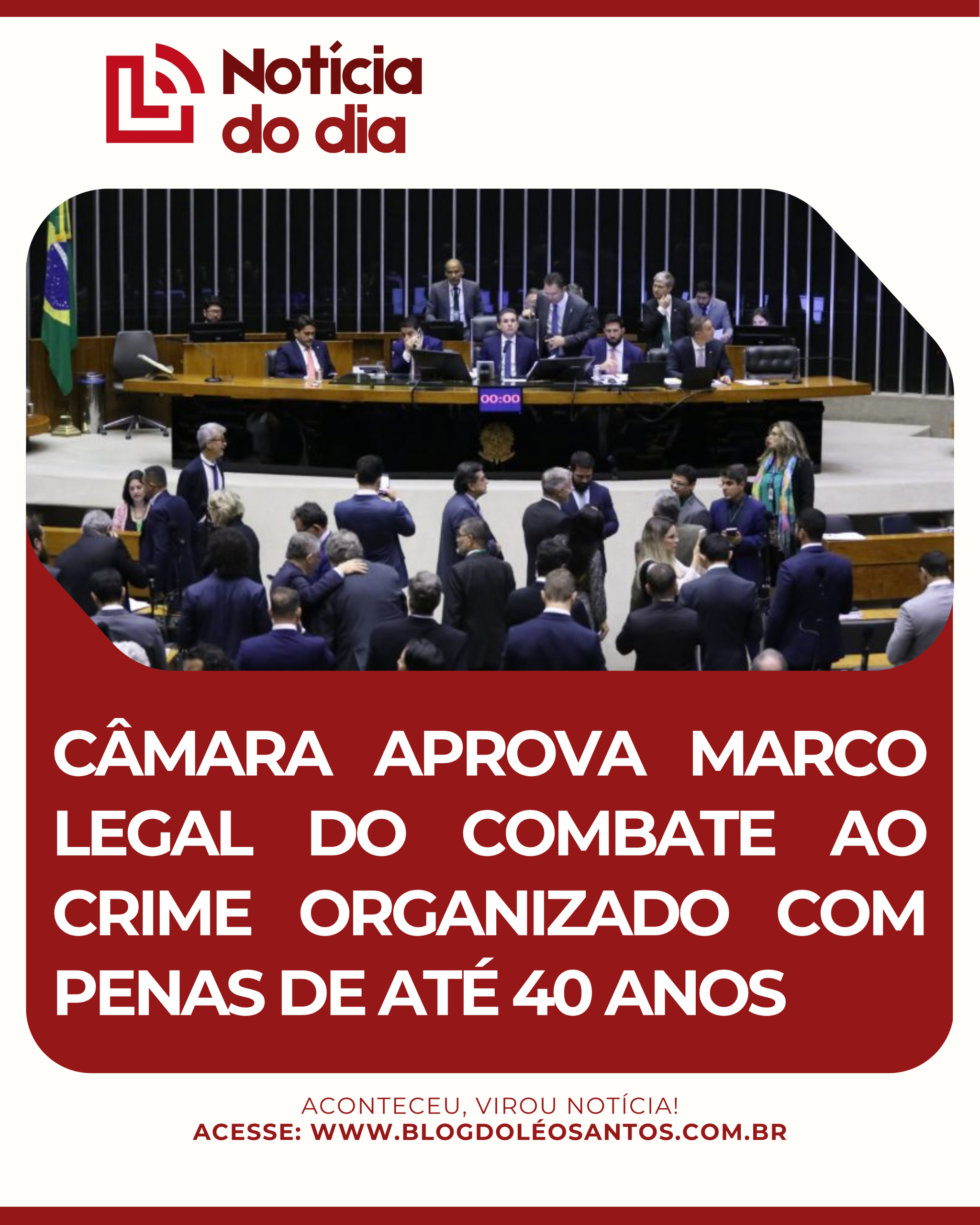 A Câmara dos Deputados aprovou na noite desta terça-feira o projeto de lei que endurece significativamente o combate a facções criminosas e milícias no Brasil. Com um placar expressivo de 370 votos a favor e 110 contra, o texto cria mecanismos mais rigorosos de punição e agora segue para análise do Senado Federal. (mais…)