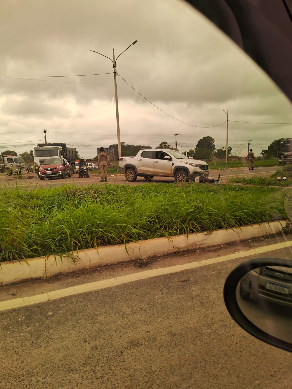 Com o impacto, a moto foi parar no chão e os veículos ficaram parados na via, o que exigiu atenção redobrada de quem passava pelo local. A Polícia Militar já se encontra na área registrando a ocorrência e organizando o fluxo.