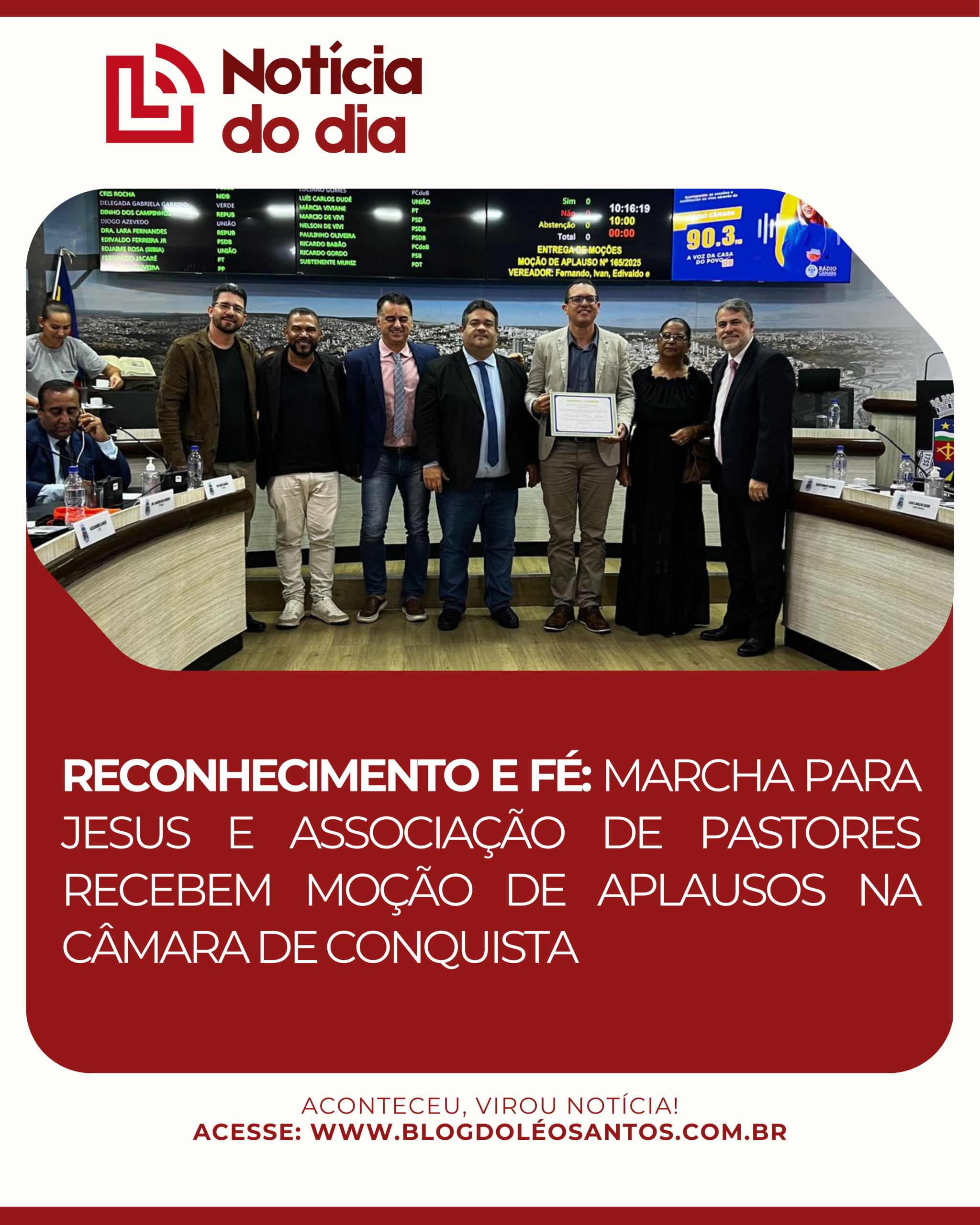 A Câmara Municipal de Vitória da Conquista foi palco de um momento solene de reconhecimento à força da comunidade evangélica na cidade. A Marcha para Jesus e a Associação de Pastores foram agraciadas com uma Moção de Aplausos, destacando a importância social e espiritual do evento para o município.