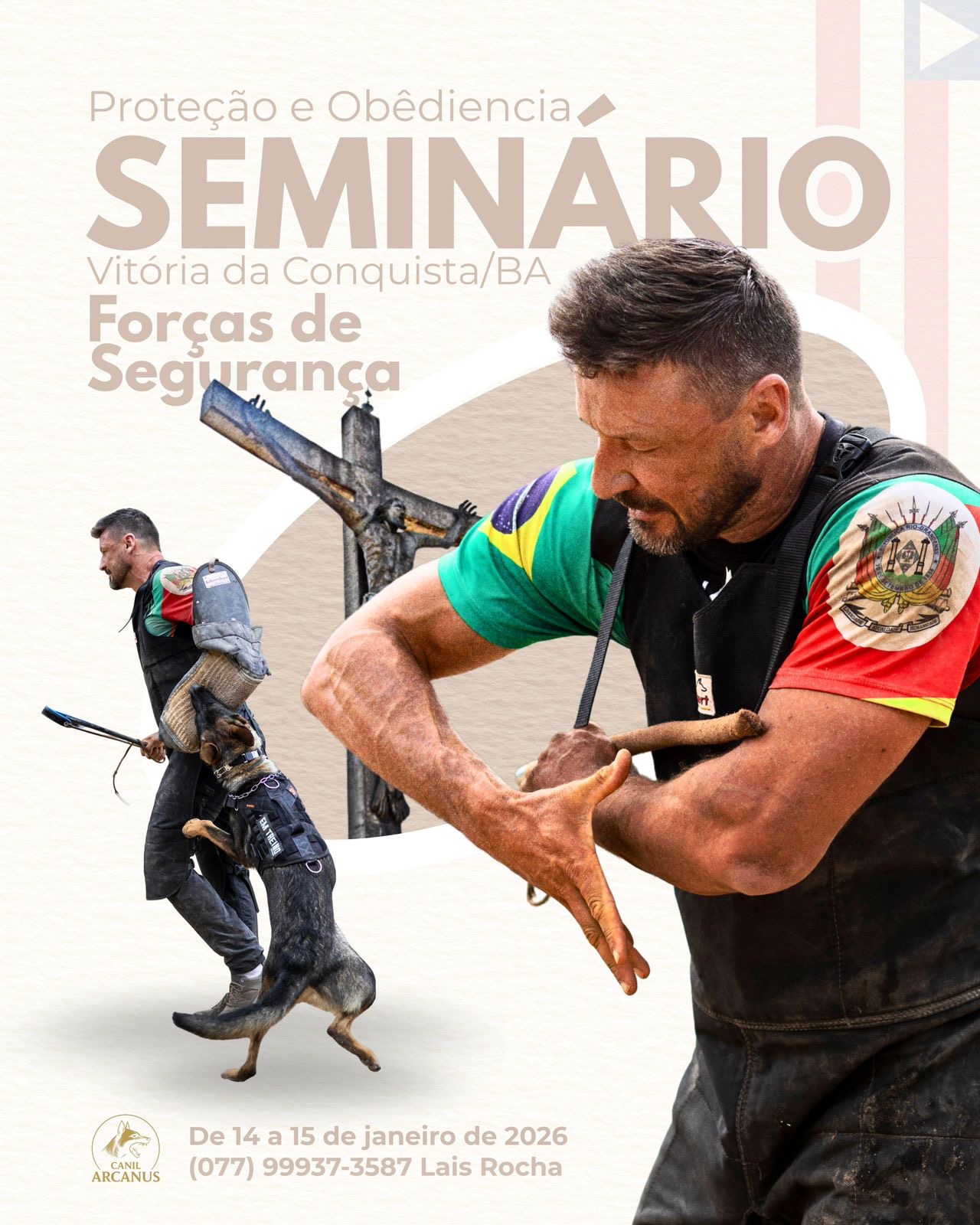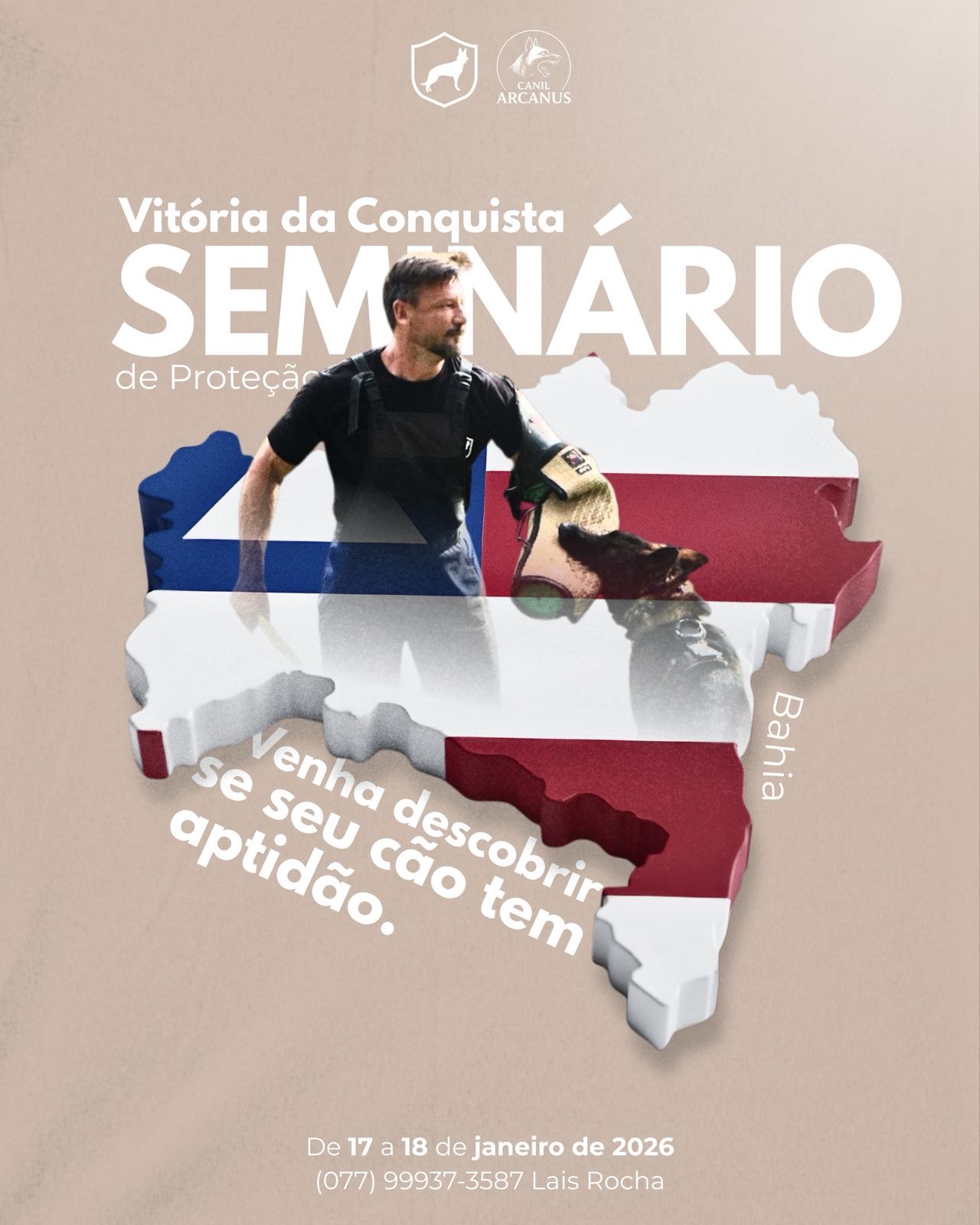 Vitória da Conquista será o centro da cinofilia baiana em janeiro de 2026. O Canil Arcanus traz para a cidade o renomado Seminário de Proteção e Obediência Funcional, ministrado por uma das maiores referências da área, Carlos Capilar (do Canil Don Odé).