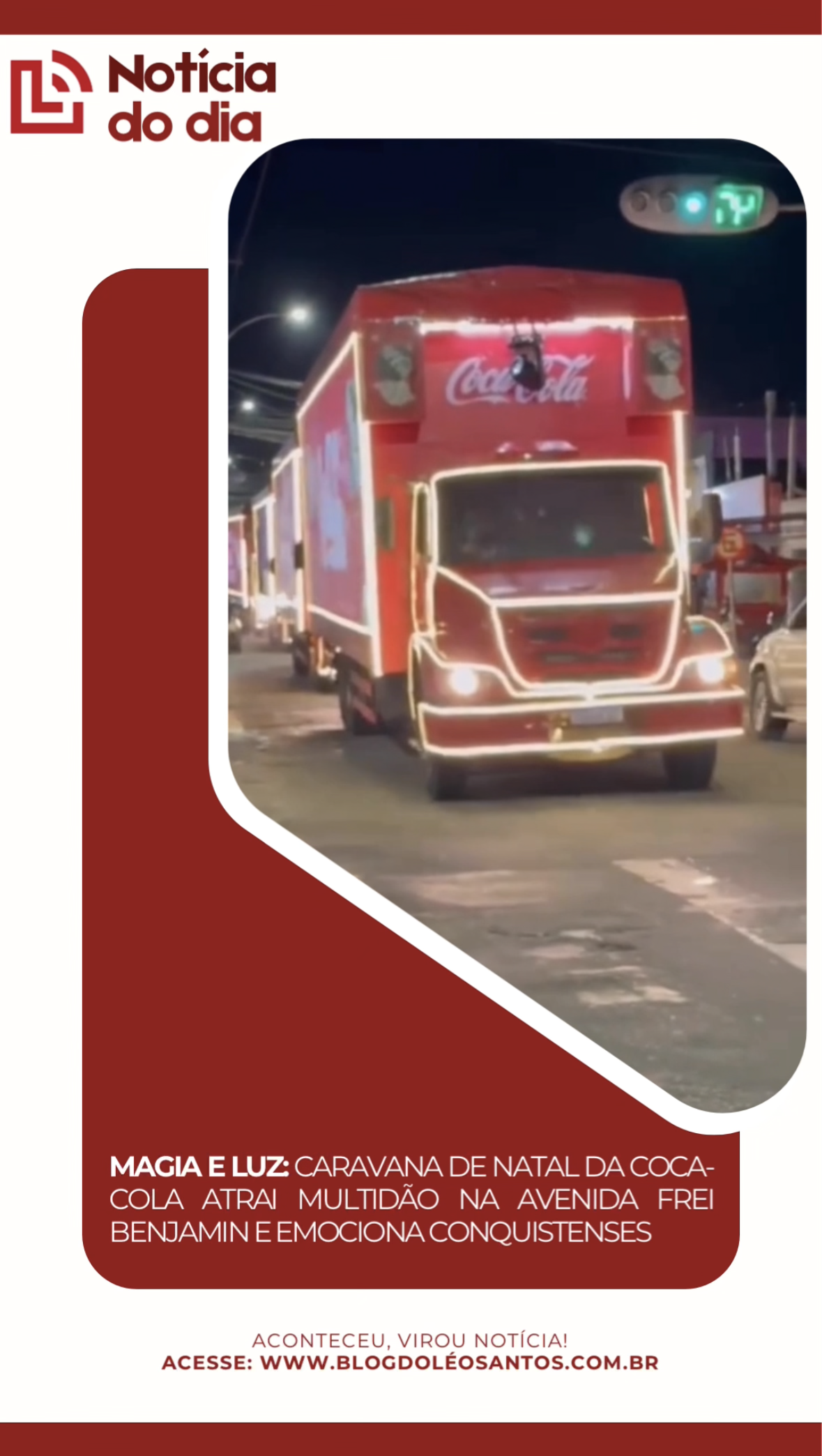 A noite deste sábado (6) foi marcada por encanto e emoção em Vitória da Conquista. A tradicional Caravana de Natal da Coca-Cola percorreu as ruas da cidade, levando a magia natalina para milhares de moradores que aguardavam ansiosos pela passagem dos caminhões iluminados.