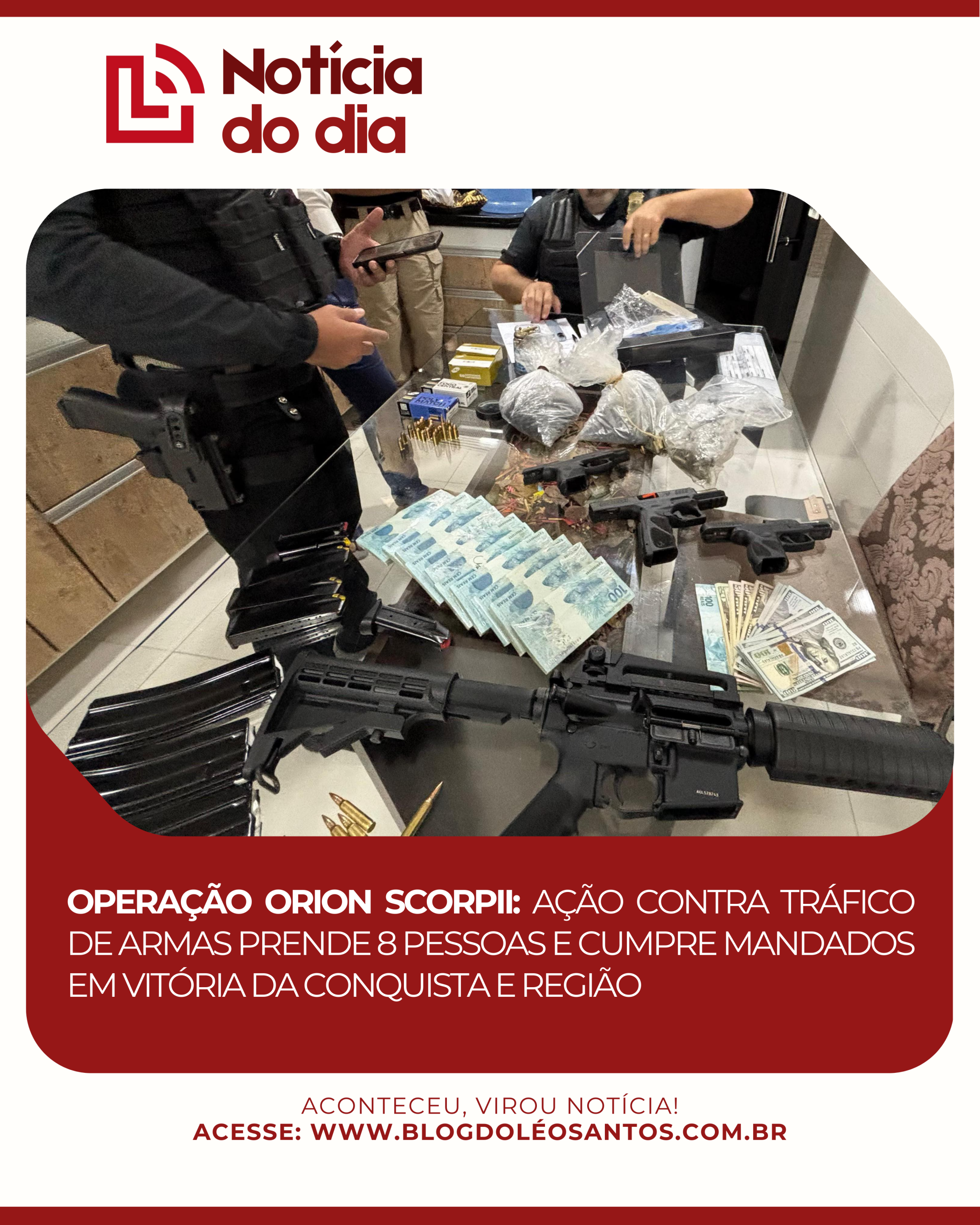 OPERAÇÃO ORION SCORPII: Ação contra tráfico de armas prende 8 pessoas e cumpre mandados em Vitória da Conquista e região