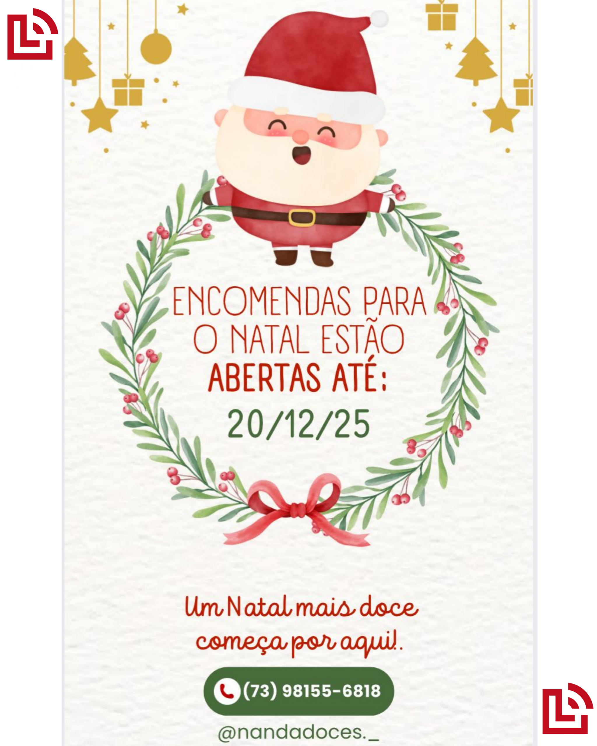 A Nanda Doces anunciou oficialmente a abertura da sua agenda de encomendas para o Natal. Com o slogan “Um Natal mais doce começa por aqui”, a marca promete trazer todo o sabor e carinho que a sua ceia merece.