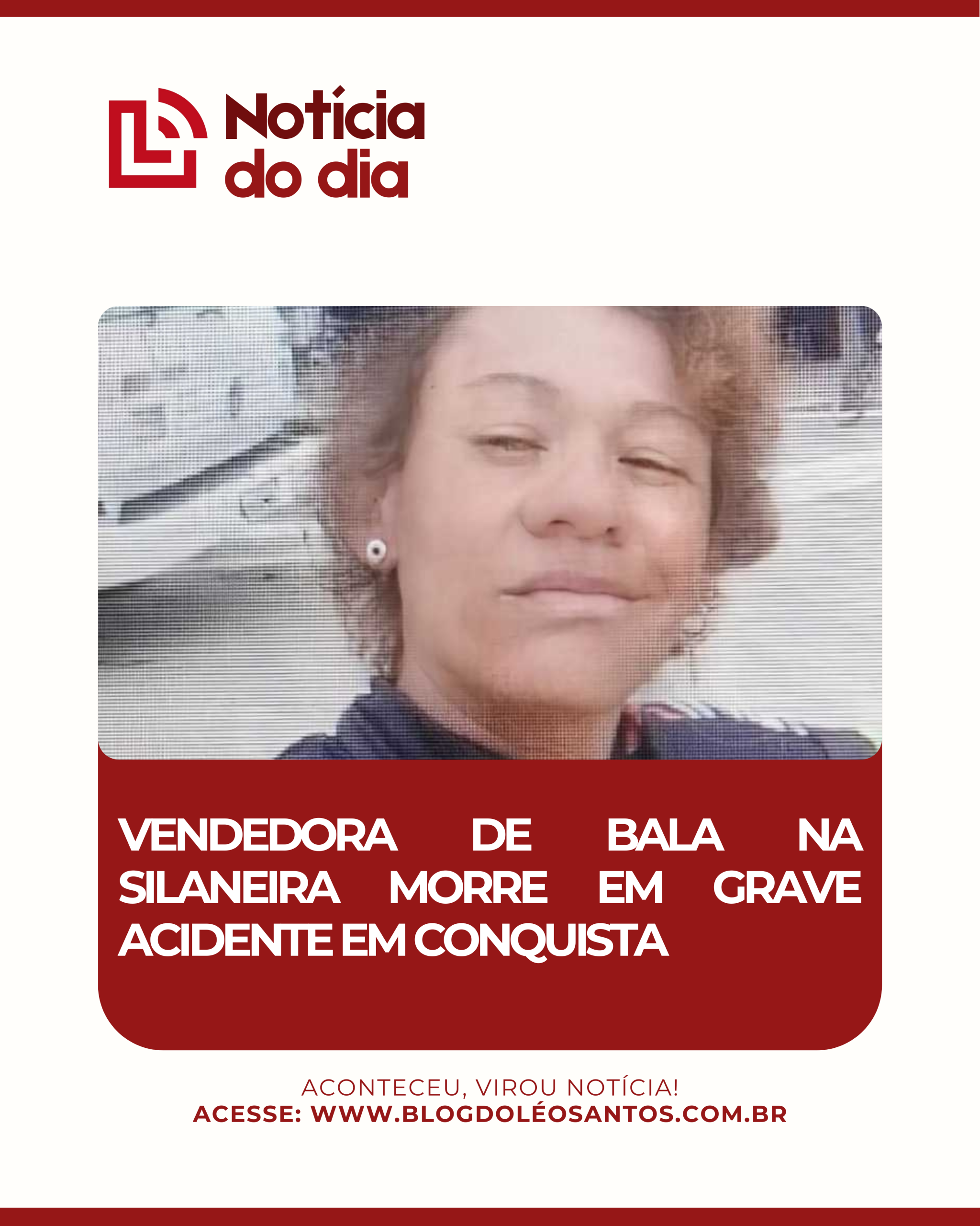 Foi identificada como Dandara a mulher que perdeu a vida em um grave acidente na tarde deste domingo (14), no Anel Rodoviário de Vitória da Conquista. Muito conhecida e querida na cidade, ela trabalhava como vendedora de doces na Avenida Juracy Magalhães, em frente ao posto V8.