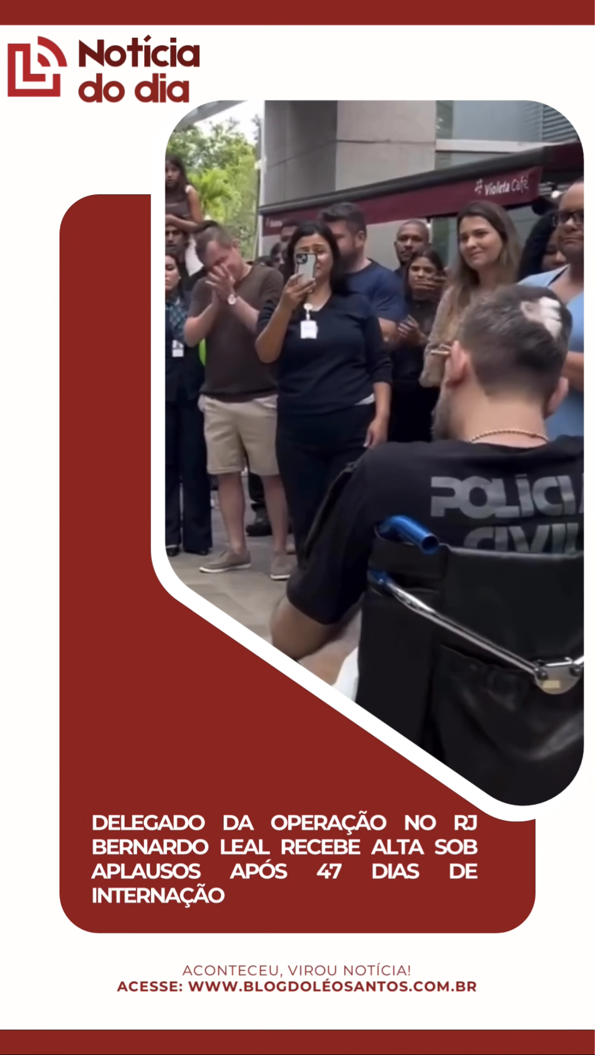 Um momento de pura emoção e reconhecimento marcou a saída do delegado Bernardo Leal do hospital. Após 47 dias de uma batalha intensa pela vida, o assistente da Delegacia de Repressão a Entorpecentes (DRE) recebeu alta médica e retornou ao convívio da família e dos colegas como um verdadeiro símbolo de superação.