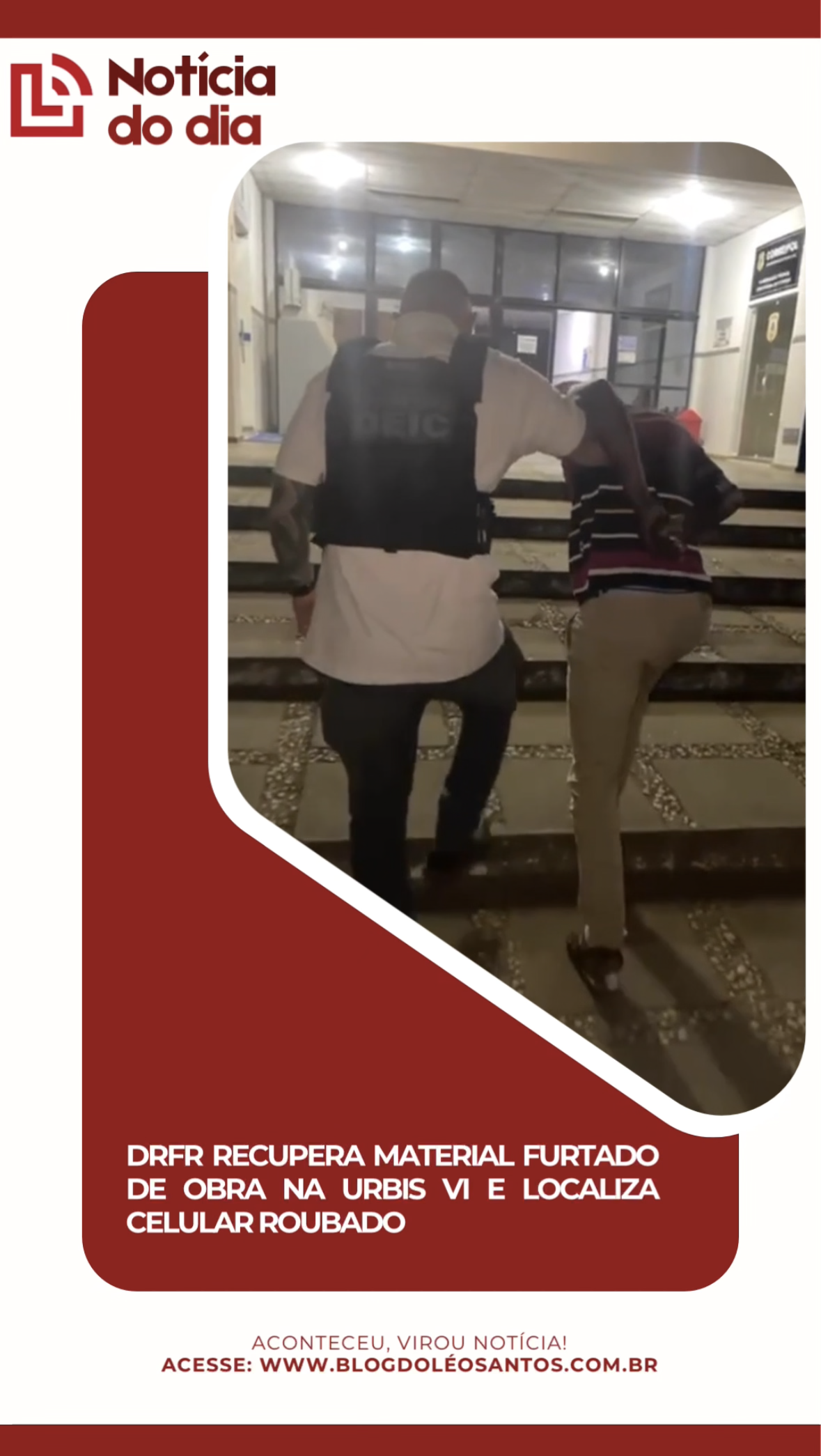 A Delegacia de Repressão a Furtos e Roubos (DRFR) recuperou, na tarde desta segunda-feira (15), uma grande quantidade de material de construção que havia sido furtada de uma obra em praça pública no bairro Urbis VI. A carga é avaliada em mais de 30 mil reais.