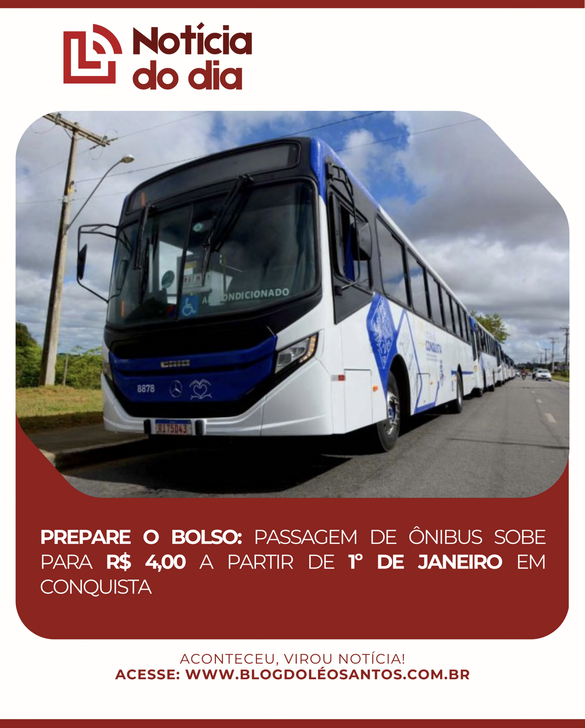 O ano de 2026 começará com mudança no valor do transporte público em Vitória da Conquista. A partir do dia 1º de janeiro, a tarifa do transporte coletivo passará por um reajuste, conforme decreto publicado no Diário Oficial do Município nesta sexta-feira (19).