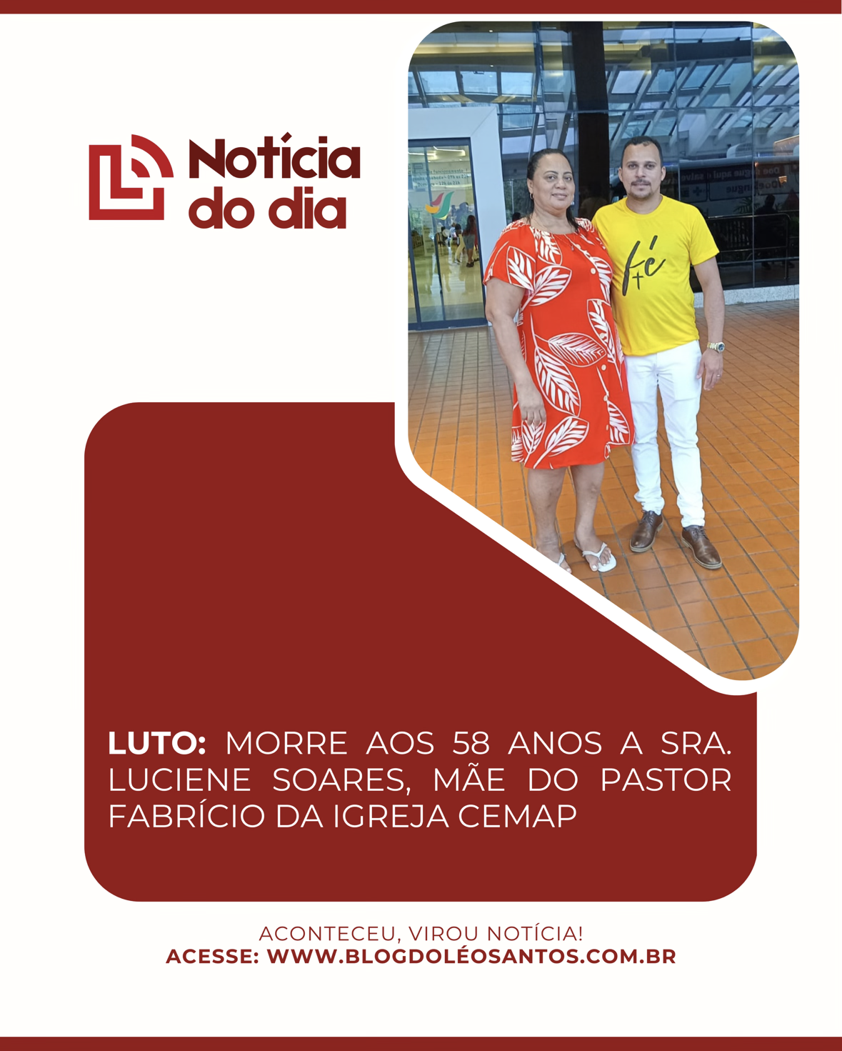 Neste momento de dor, o Blog manifesta seus sinceros sentimentos e solidariedade ao Pastor Fabrício, familiares e amigos.