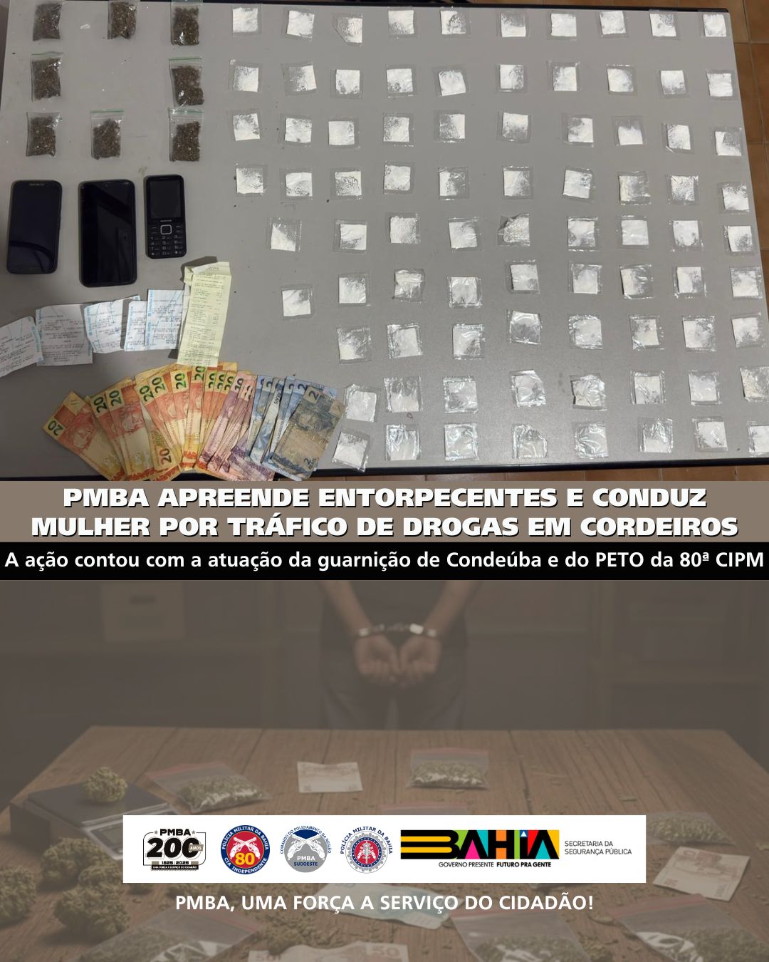 A Polícia Militar da Bahia, por meio da 80ª Companhia Independente de Polícia Militar, intensificou o combate ao tráfico de drogas no município de Cordeiros e prendeu uma mulher na noite desta sexta-feira, dia 27.