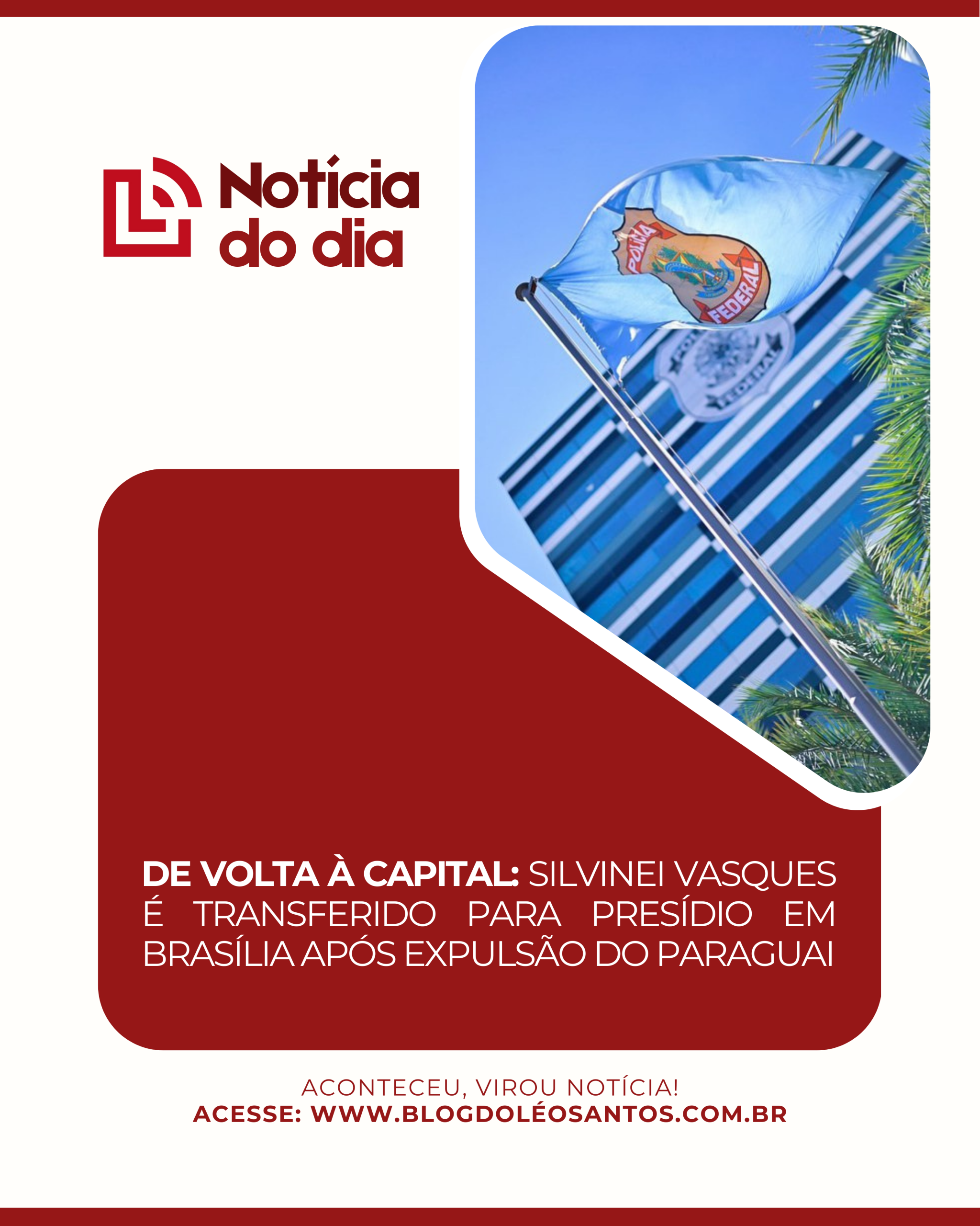 A Polícia Federal (PF) concluiu, neste sábado (27), a transferência do ex-diretor-geral da PRF, Silvinei Vasques, para a capital federal. A operação ocorre um dia após ele ser detido e expulso do Paraguai.