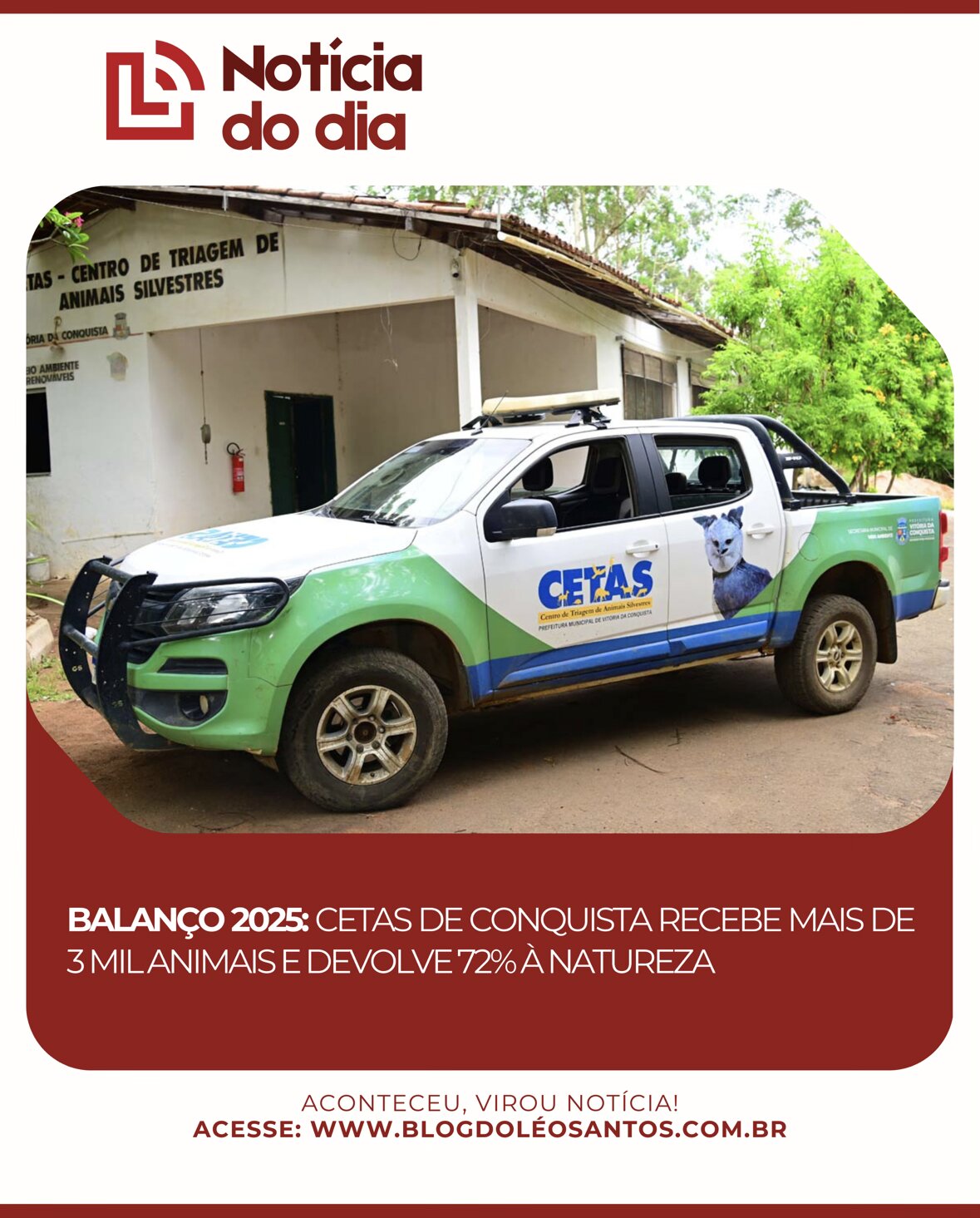 O Centro de Triagem de Animais Silvestres (Cetas) de Vitória da Conquista divulgou os números de 2025, reafirmando seu papel estratégico na preservação da biodiversidade. Ao longo dos 12 meses, a unidade recebeu 3.192 animais silvestres, oriundos de apreensões, resgates e entregas voluntárias.