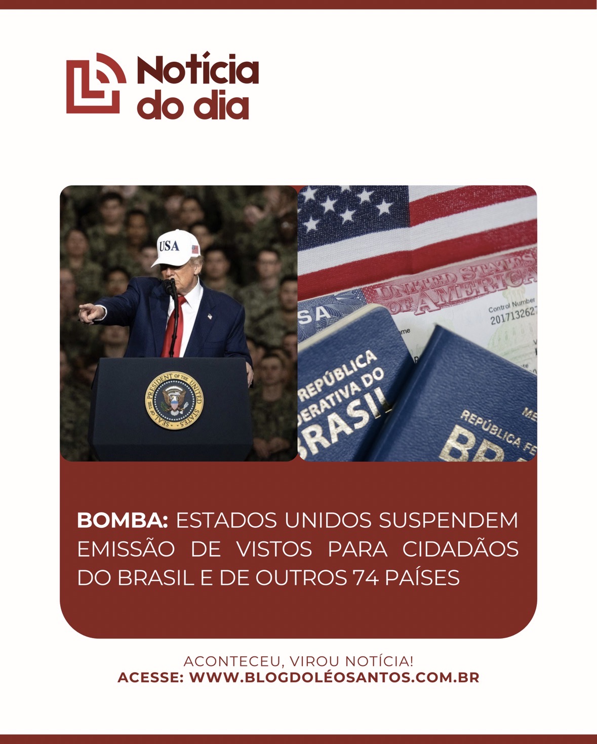 A informação foi divulgada pela emissora americana Fox News, que teve acesso a um memorando interno do Departamento de Estado dos EUA. De acordo com o documento, a restrição entra em vigor a partir do dia 21 de janeiro de 2026. A partir dessa data, embaixadas e consulados americanos devem recusar os pedidos de visto enquanto o governo realiza uma reavaliação completa dos procedimentos de triagem e verificação dos solicitantes. A suspensão é por tempo indeterminado.
