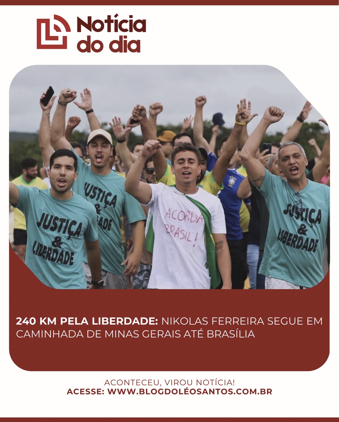 Nesta terça-feira, o deputado federal Nikolas Ferreira encara o segundo dia de um desafio físico e político que tem chamado a atenção nas redes sociais. O parlamentar mineiro iniciou, na última segunda-feira, uma jornada a pé de aproximadamente 240 quilômetros, saindo de Paracatu, no interior de Minas, com destino à capital federal.