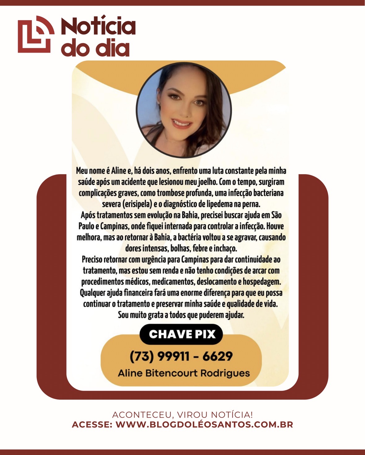 Para quem deseja colaborar com qualquer quantia ou conhecer mais sobre a história dela, pode entrar em contato ou fazer PIX diretamente através do número (73) 99911-6629