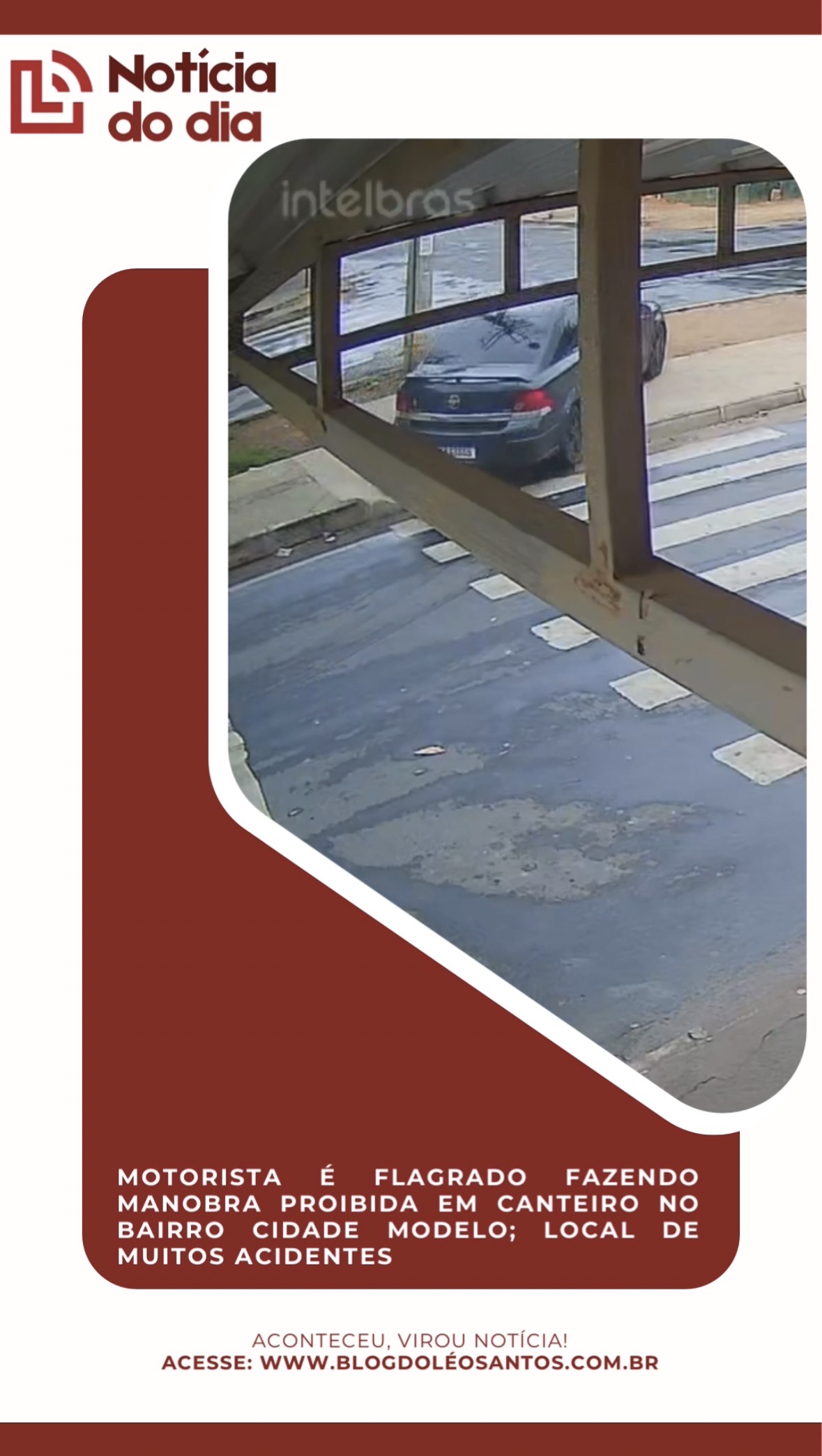 Nas imagens, registradas por uma câmera de segurança às 11h32, um veículo sedan de cor escura ignora a sinalização e atravessa o canteiro central, passando por cima da área destinada à travessia de pedestres, para mudar de via ou fazer um retorno irregular.