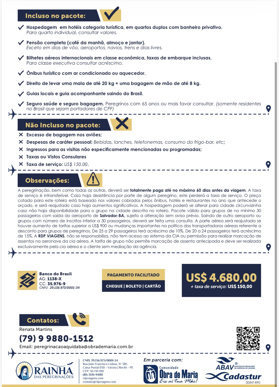 Para mais informações, roteiro detalhado e reservas, entre em contato com a representante comercial Renata Martins: