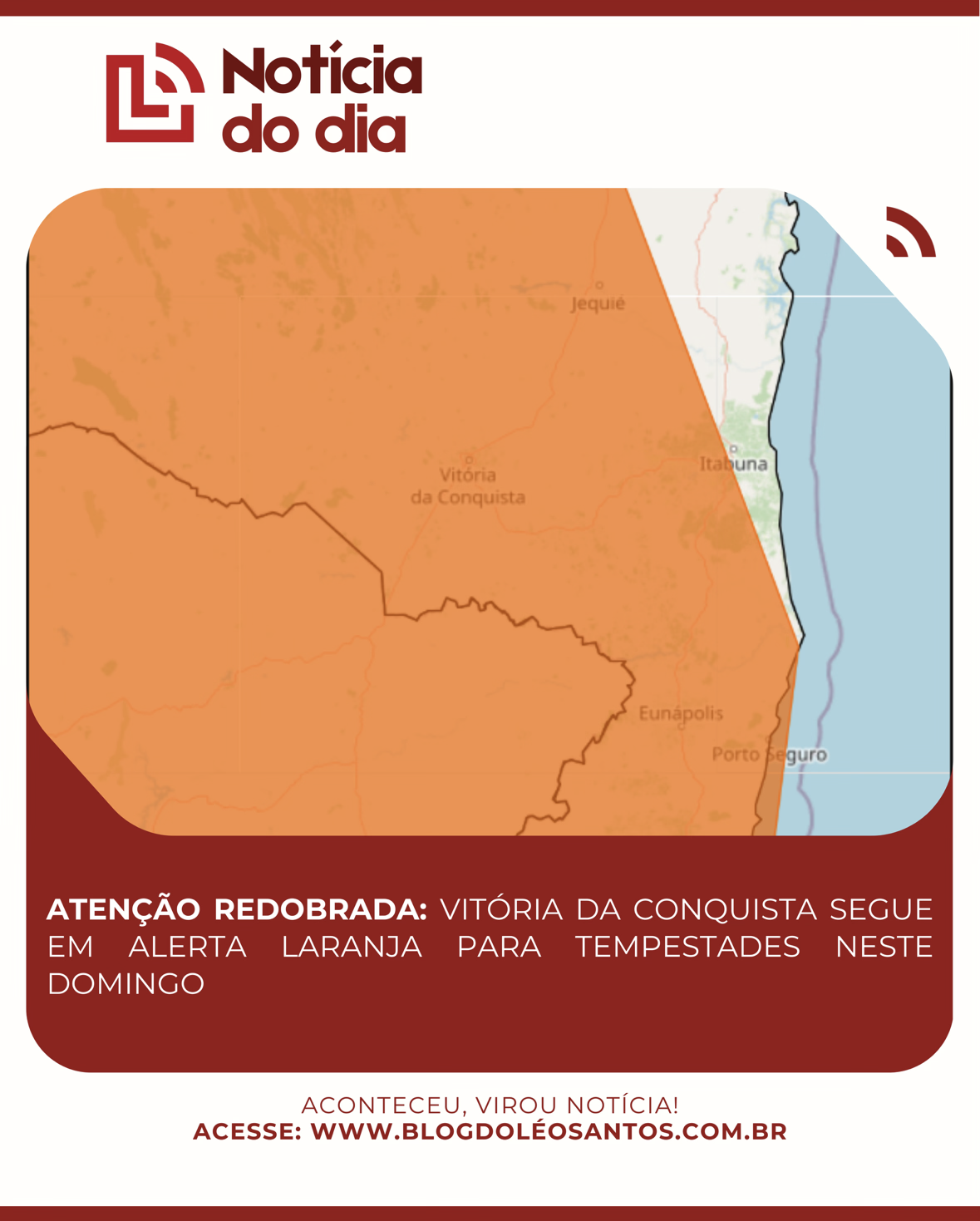 O domingo começou exigindo cautela dos conquistenses. O Instituto Nacional de Meteorologia (Inmet) atualizou as previsões e manteve Vitória da Conquista em alerta laranja para riscos de tempestades. O aviso, que já está valendo, segue até às 10h da manhã desta segunda-feira, dia 2.