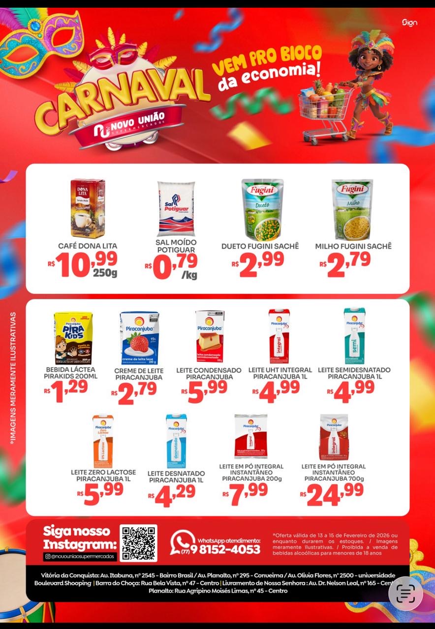 O Carnaval está chegando, mas em Vitória da Conquista o verdadeiro desfile de preços baixos acontece no Supermercado Novo União.