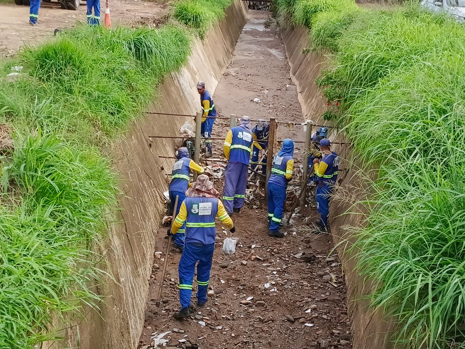 A Secretaria Municipal de Serviços Públicos (SESEP) iniciou um grande mutirão de limpeza em diversos pontos de Vitória da Conquista logo após as fortes chuvas que atingiram o município. Sob o comando do secretário Luís Paulo e do coordenador Beto, as equipes de campo foram distribuídas para realizar a remoção de terra e a desobstrução de canais de drenagem.