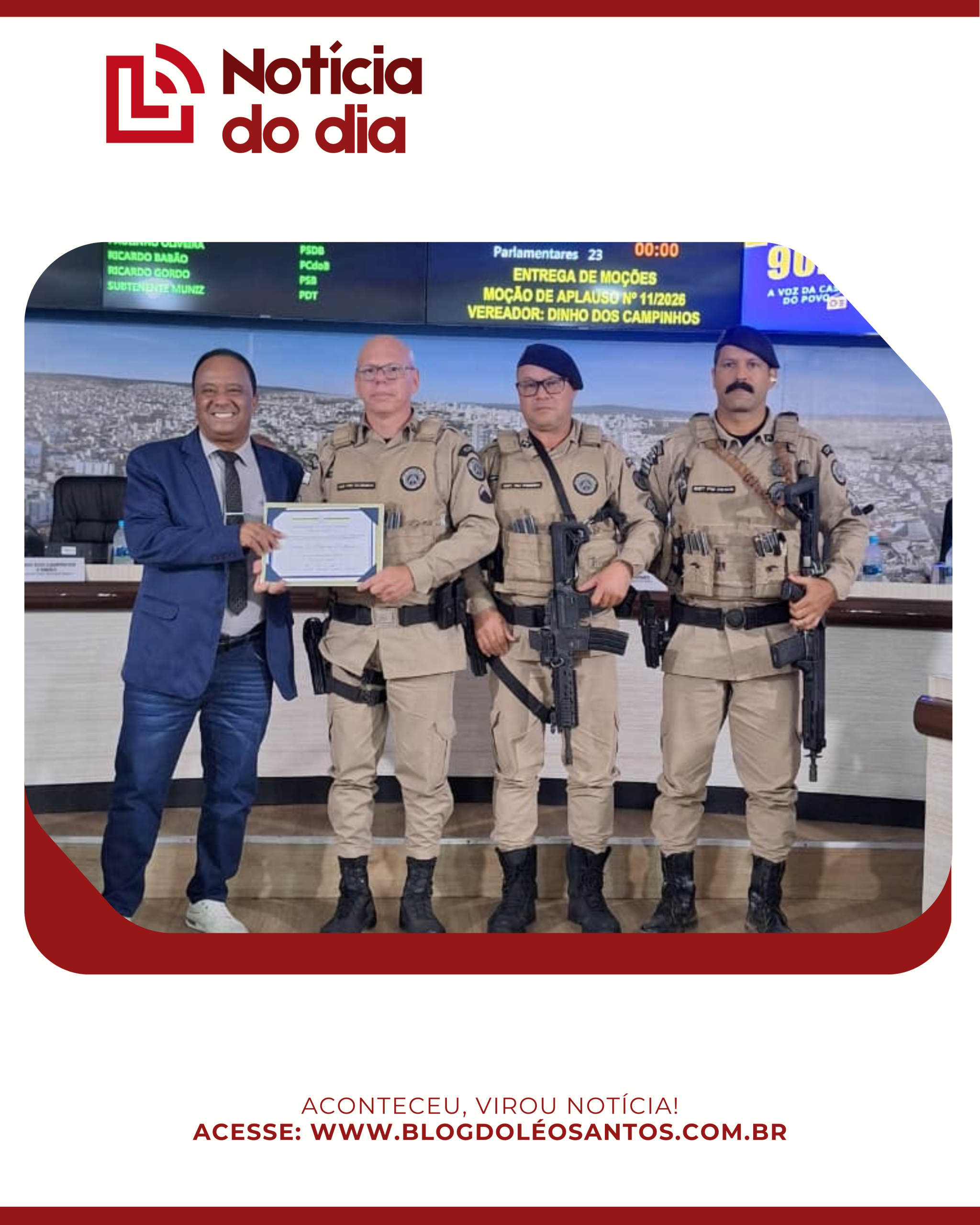 Nesta quarta-feira (4), a Câmara Municipal de Vitória da Conquista concedeu uma Moção de Aplausos ao Cabo Ulisses, em justo reconhecimento aos relevantes serviços prestados à segurança pública do município.