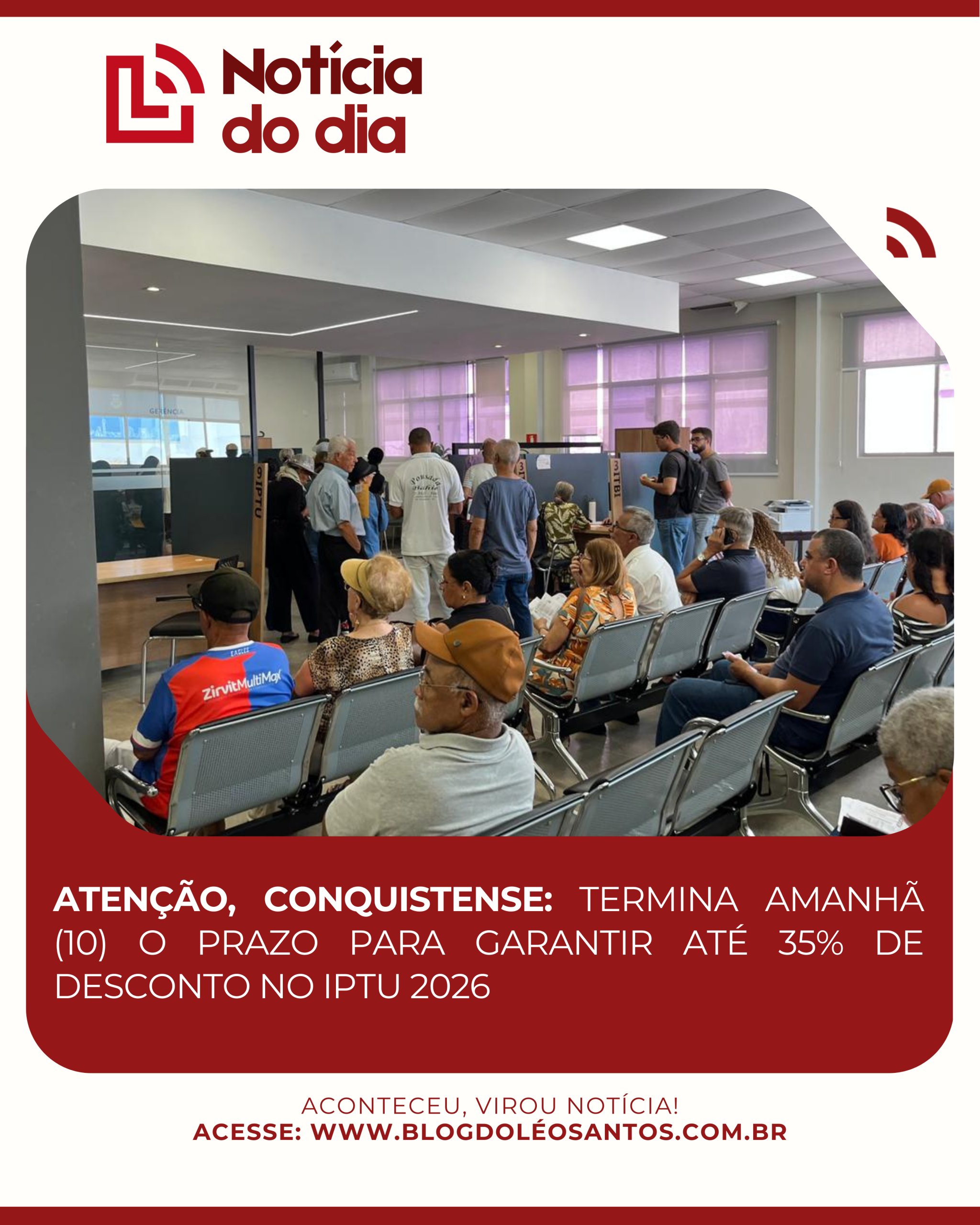 Atenção, conquistense: Termina amanhã (10) o prazo para garantir até 35% de desconto no IPTU 2026
