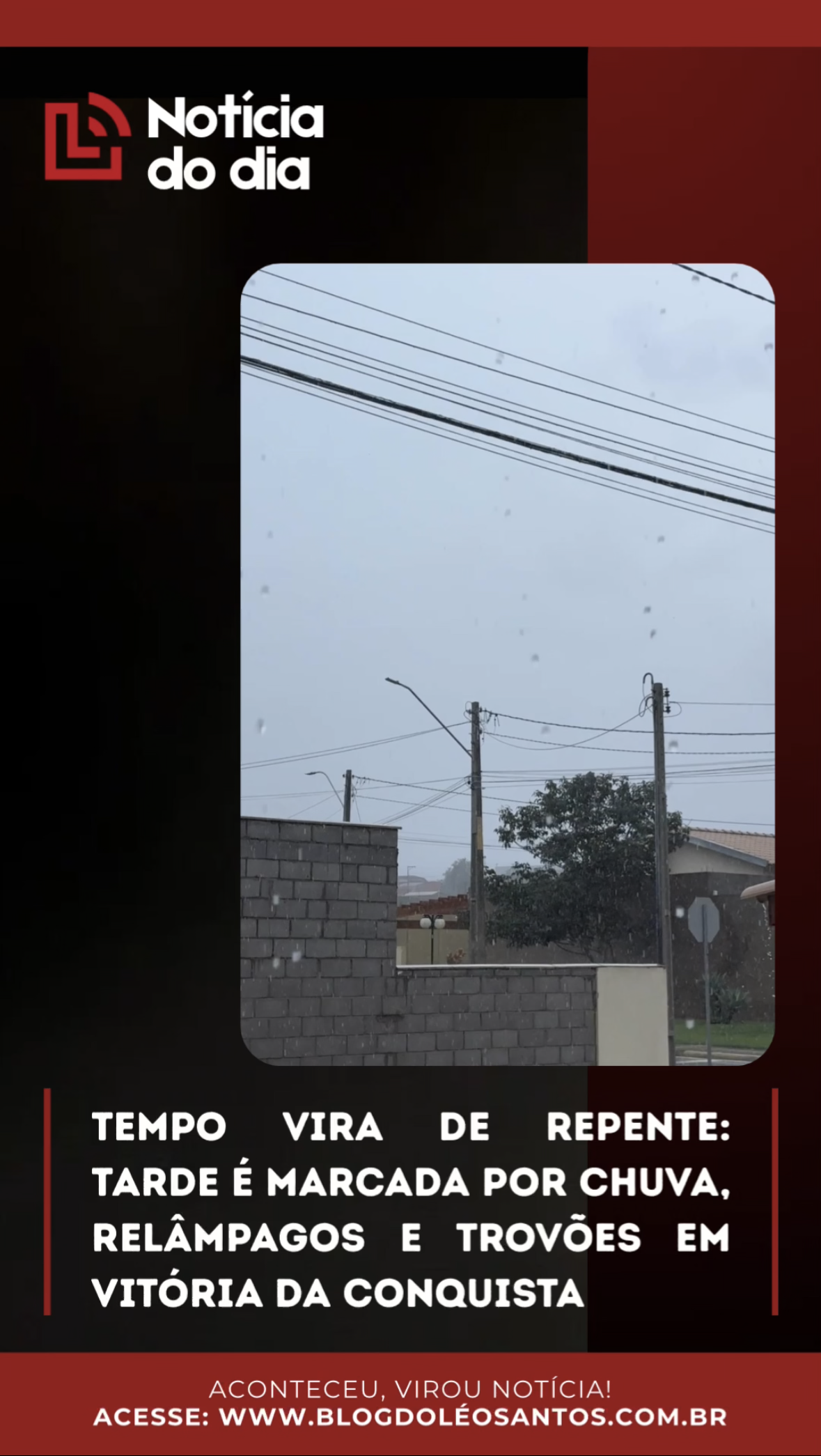 Tempo vira de repente: Tarde é marcada por chuva, relâmpagos e trovões em Vitória da Conquista