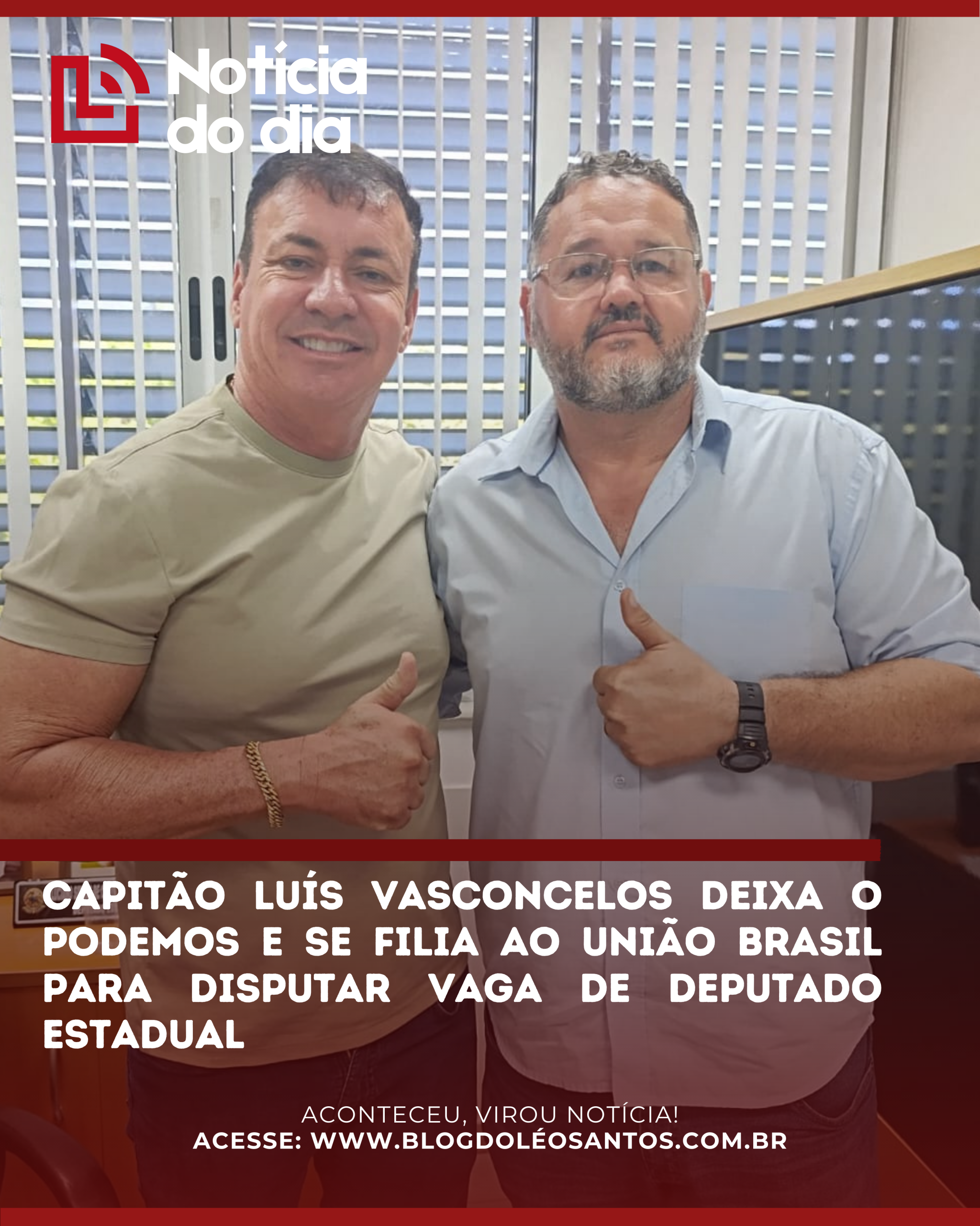 Nesta terça-feira (10), o Capitão Luís Vasconcelos oficializou sua filiação ao partido União Brasil (UB), traçando como prioridade a disputa por uma cadeira na Assembleia Legislativa da Bahia nas eleições de 2026.
