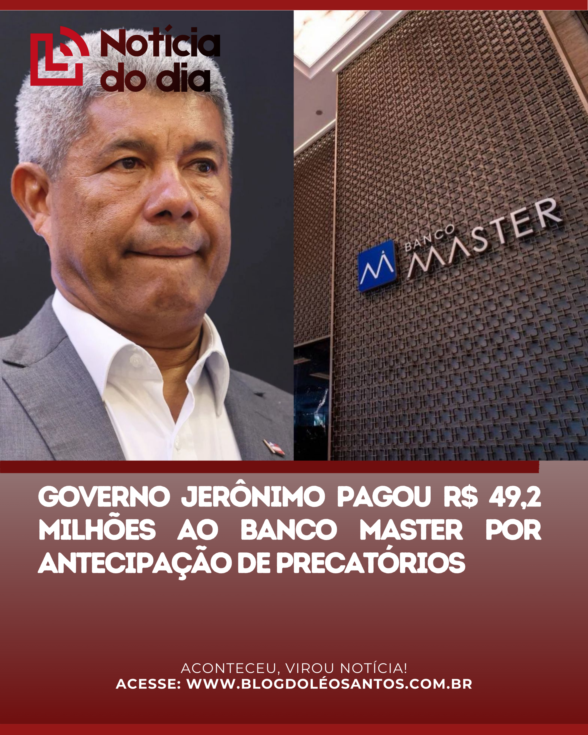 Governo Jerônimo pagou R$ 49,2 milhões ao Banco Master por antecipação de precatórios