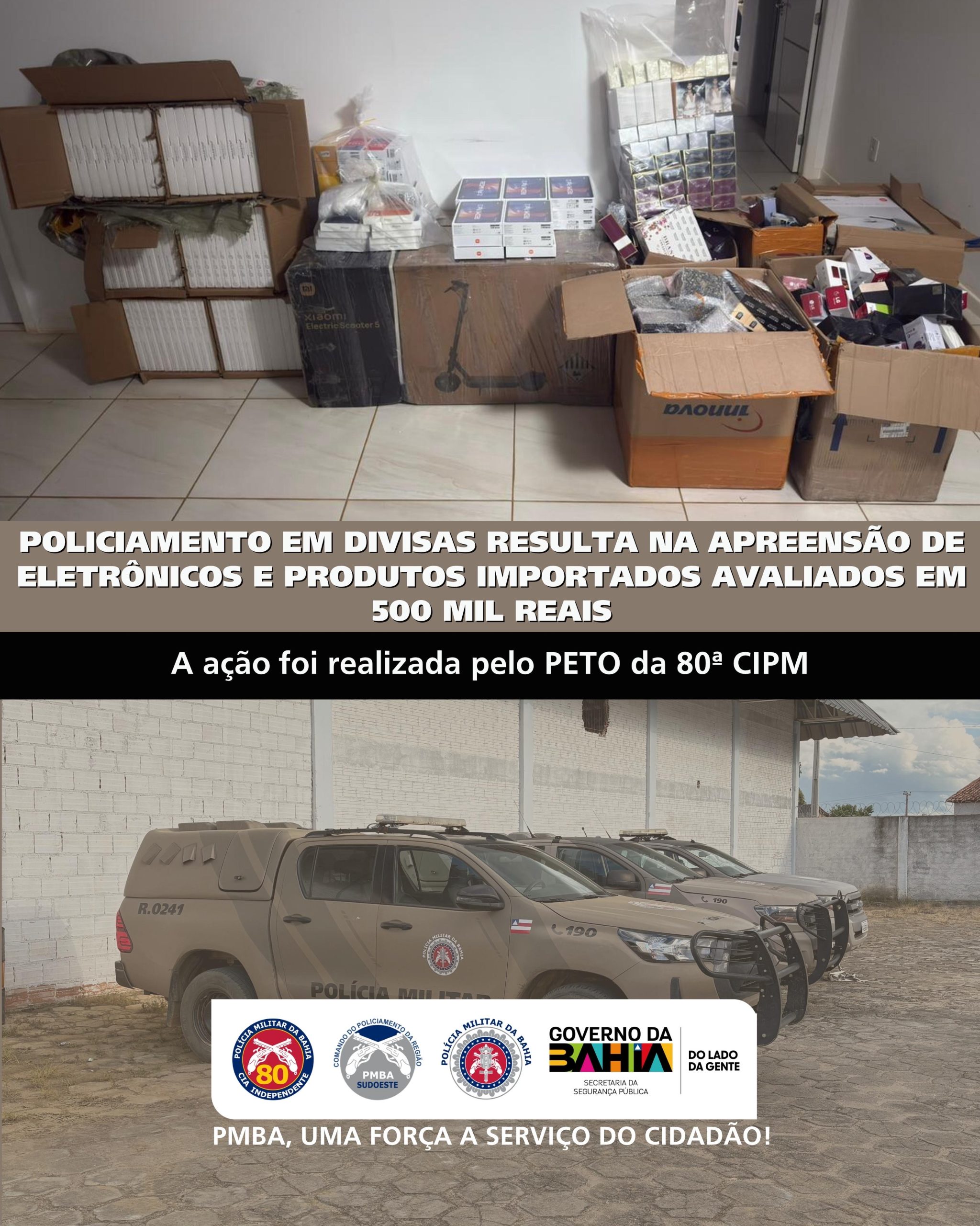 PETO DA 80ª CIPM APREENDE MEIO MILHÃO DE REAIS EM ELETRÔNICOS POR DESCAMINHO EM CÂNDIDO SALES