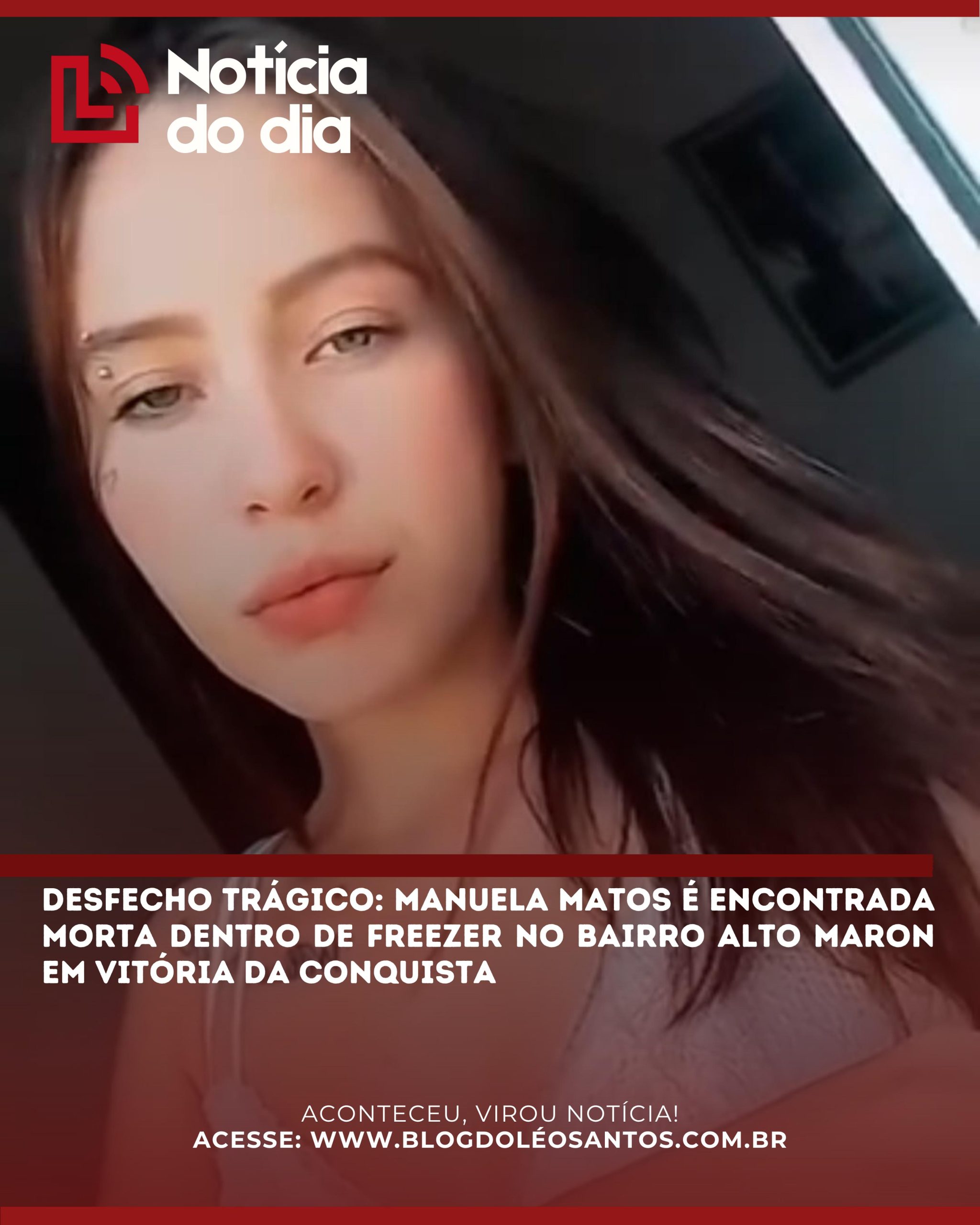 O caso do desaparecimento de Manuela Matos, de 23 anos, teve um desfecho chocante e profundamente triste na tarde deste domingo (29). A jovem, que vinha sendo procurada por familiares e amigos, foi encontrada sem vida dentro de um freezer em um imóvel localizado na Rua Monte Castelo, no bairro Alto Maron, em Vitória da Conquista.