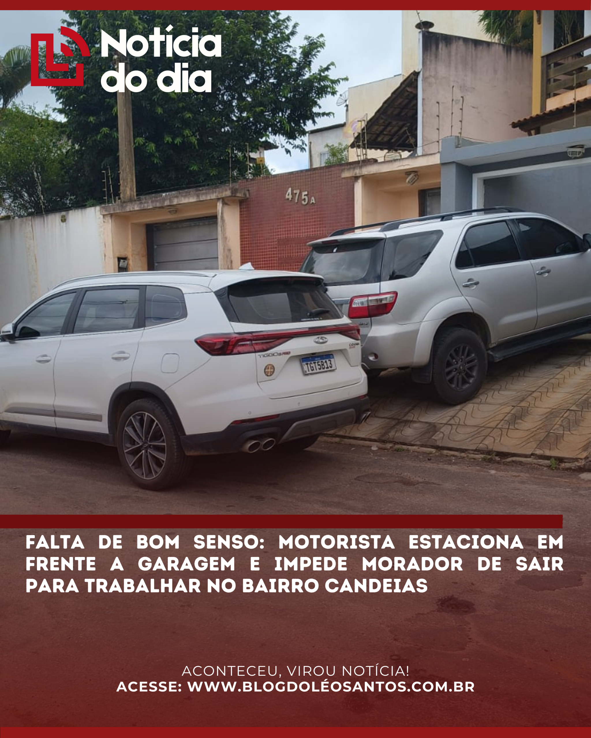 Na manhã desta segunda-feira (30), um morador do bairro Candeias, em Vitória da Conquista, passou por uma situação de extremo transtorno. Um veículo de cor branca foi estacionado de forma irregular bem em frente à garagem de uma residência na Rua Paulo Filadelfo, bloqueando totalmente a saída.