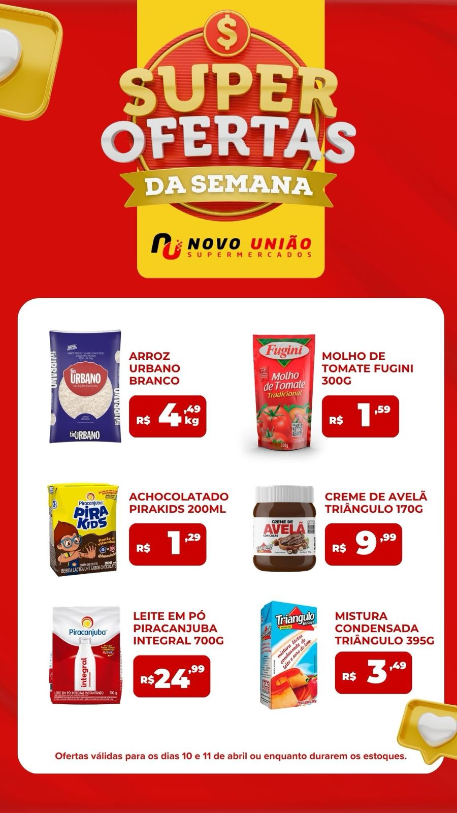 Os consumidores que buscam economizar nas compras para o fim de semana já podem conferir as super ofertas do Novo União Supermercados. As promoções anunciadas são válidas para esta sexta-feira (10) e sábado (11) de abril, ou enquanto durarem os estoques.