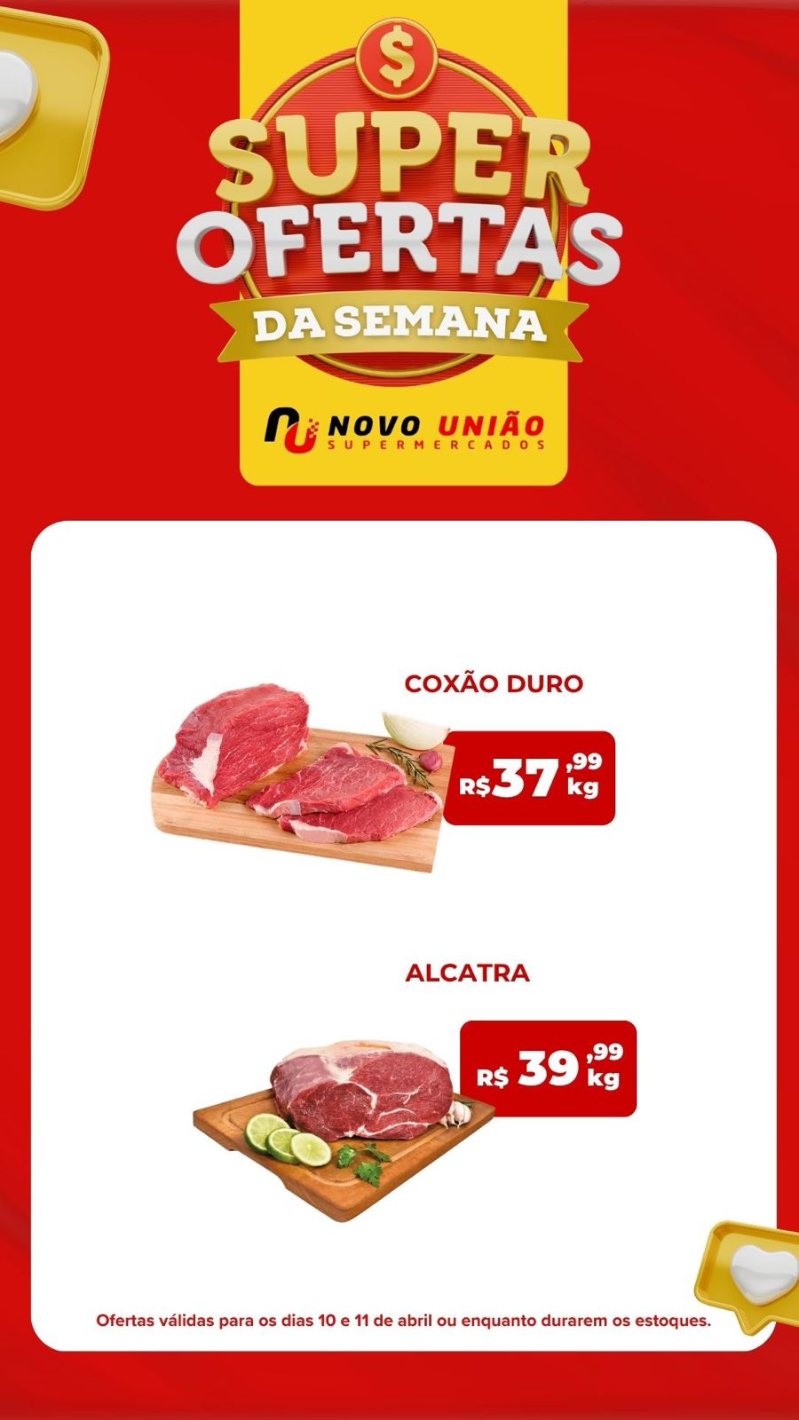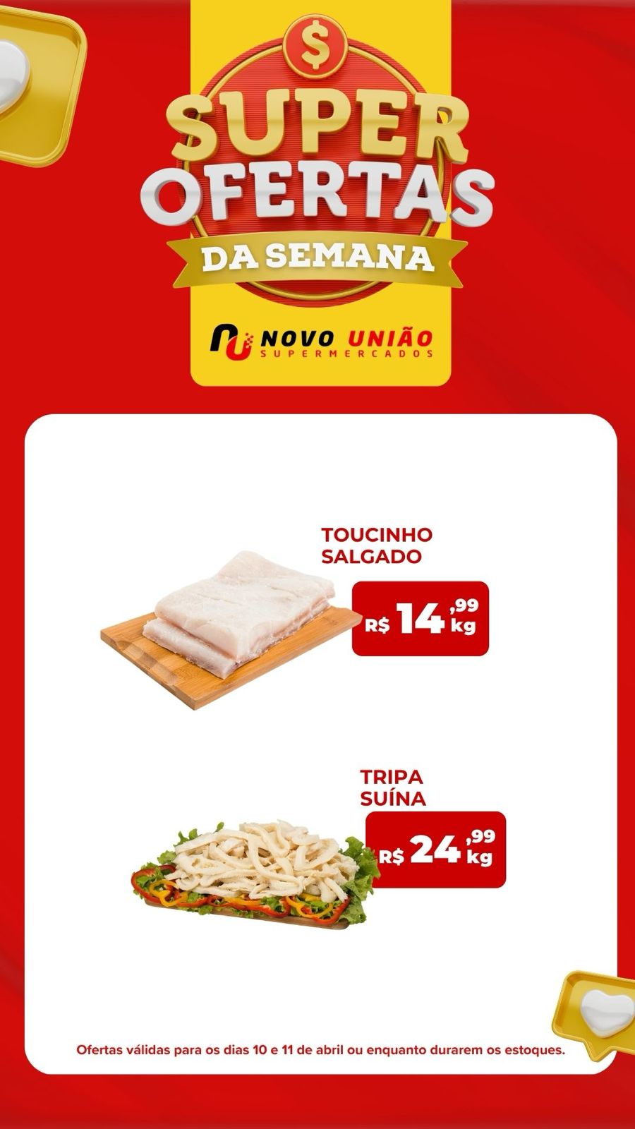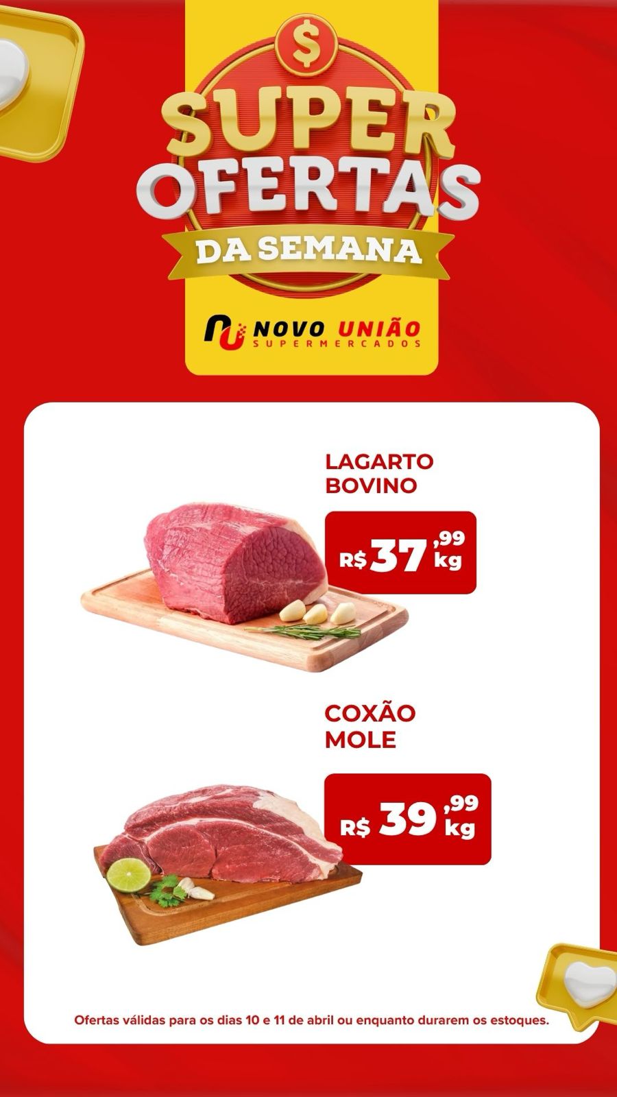 Os consumidores que buscam economizar nas compras para o fim de semana já podem conferir as super ofertas do Novo União Supermercados. As promoções anunciadas são válidas para esta sexta-feira (10) e sábado (11) de abril, ou enquanto durarem os estoques.