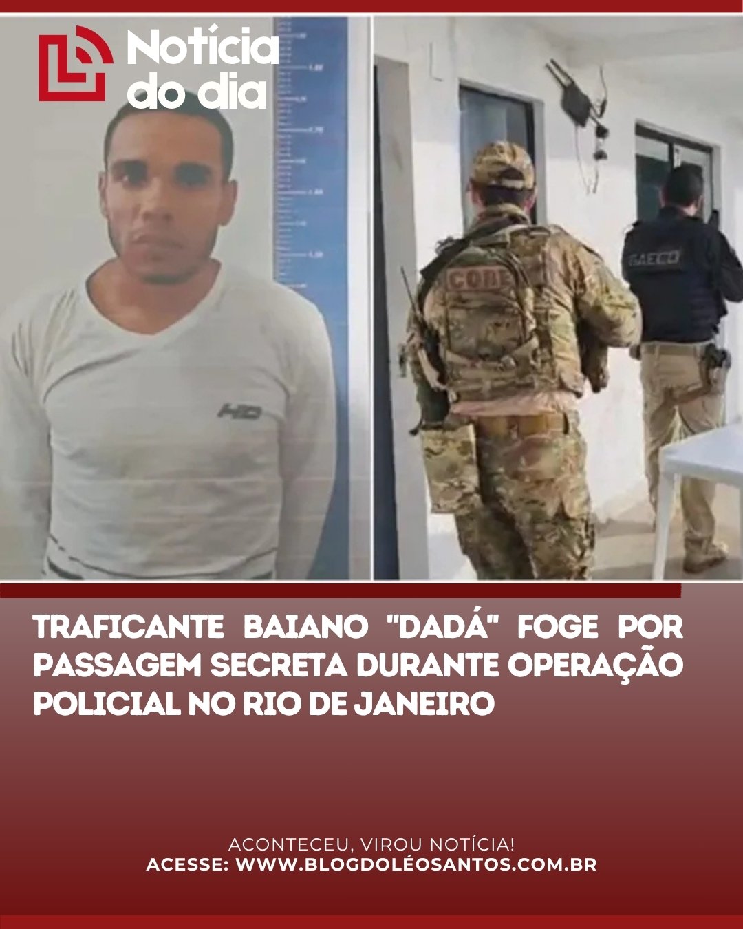 Apontado como uma das principais lideranças do tráfico no extremo sul da Bahia, o traficante Ednaldo Pereira dos Santos, conhecido como “Dadá”, conseguiu escapar de uma operação policial na manhã desta segunda-feira (20). A fuga ocorreu na comunidade do Vidigal, no Rio de Janeiro, através de uma passagem secreta tão estreita que impediu a perseguição dos agentes de segurança, que utilizavam coletes à prova de balas.