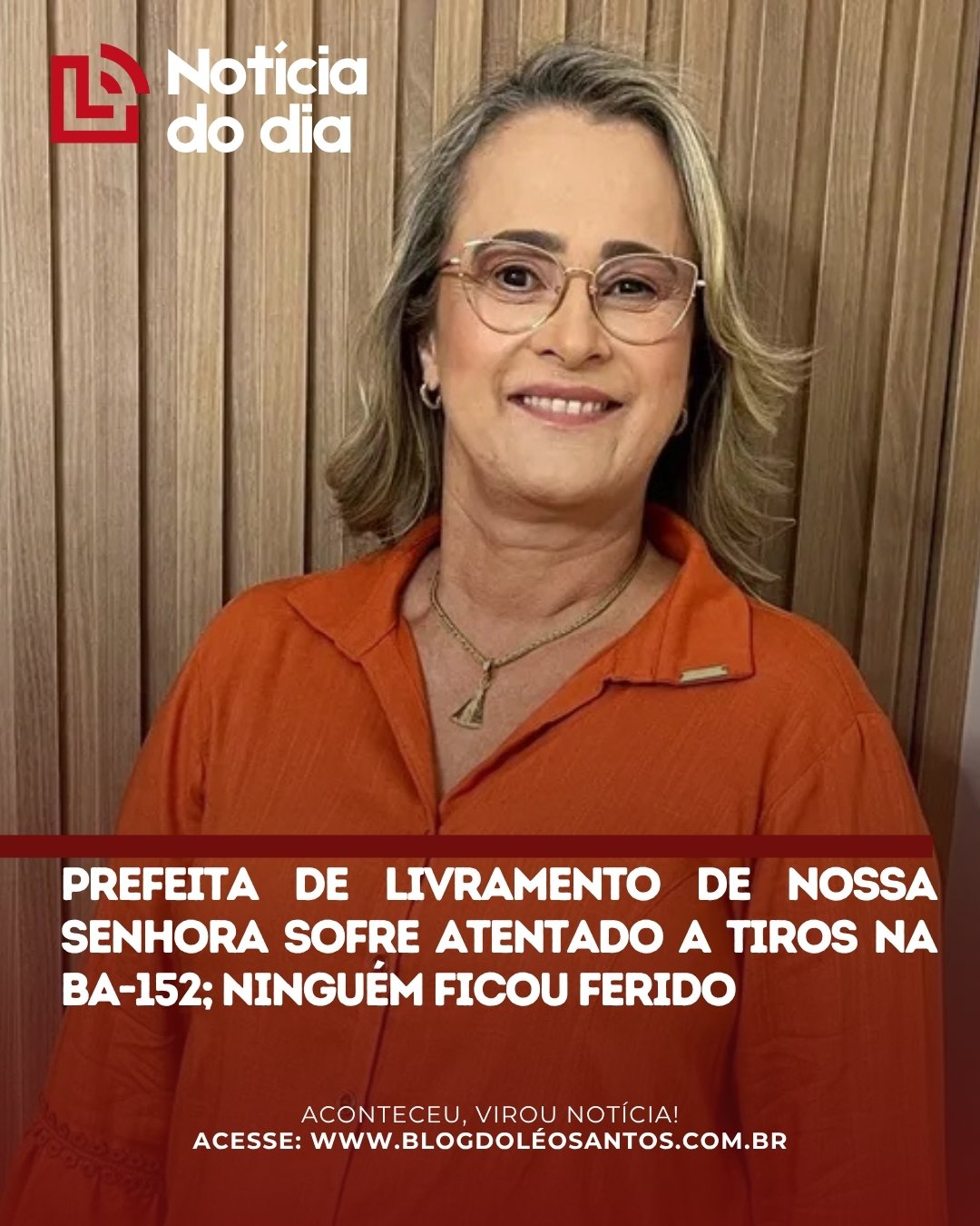 Na tarde desta terça-feira (21), por volta das 14h, a prefeita do município de Livramento de Nossa Senhora, Joanina Sampaio, foi alvo de um atentado a tiros. O ataque ocorreu enquanto a gestora trafegava pela rodovia BA-152, especificamente no trecho que faz a ligação entre a sede do município e o distrito de Itanajé.