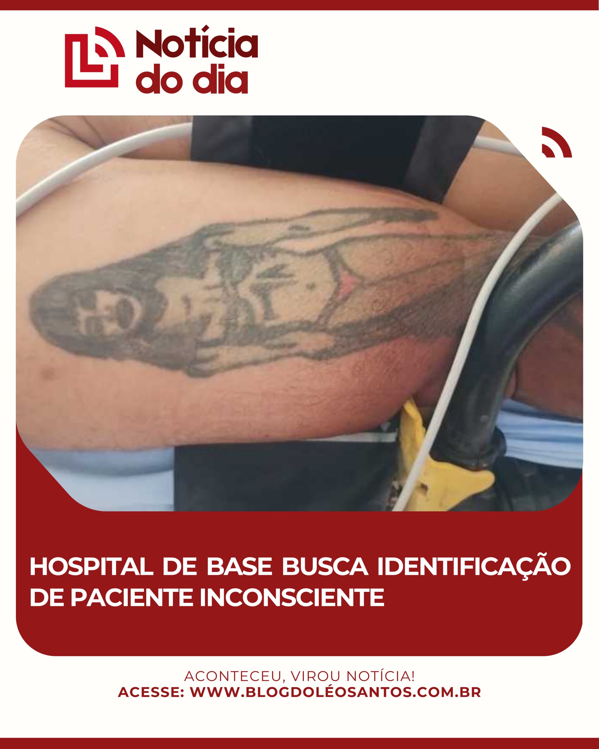 Caso você reconheça a tatuagem ou tenha informações sobre algum homem desaparecido com essas características na região do Parque de Exposição, entre em contato imediatamente com o serviço social do hospital.