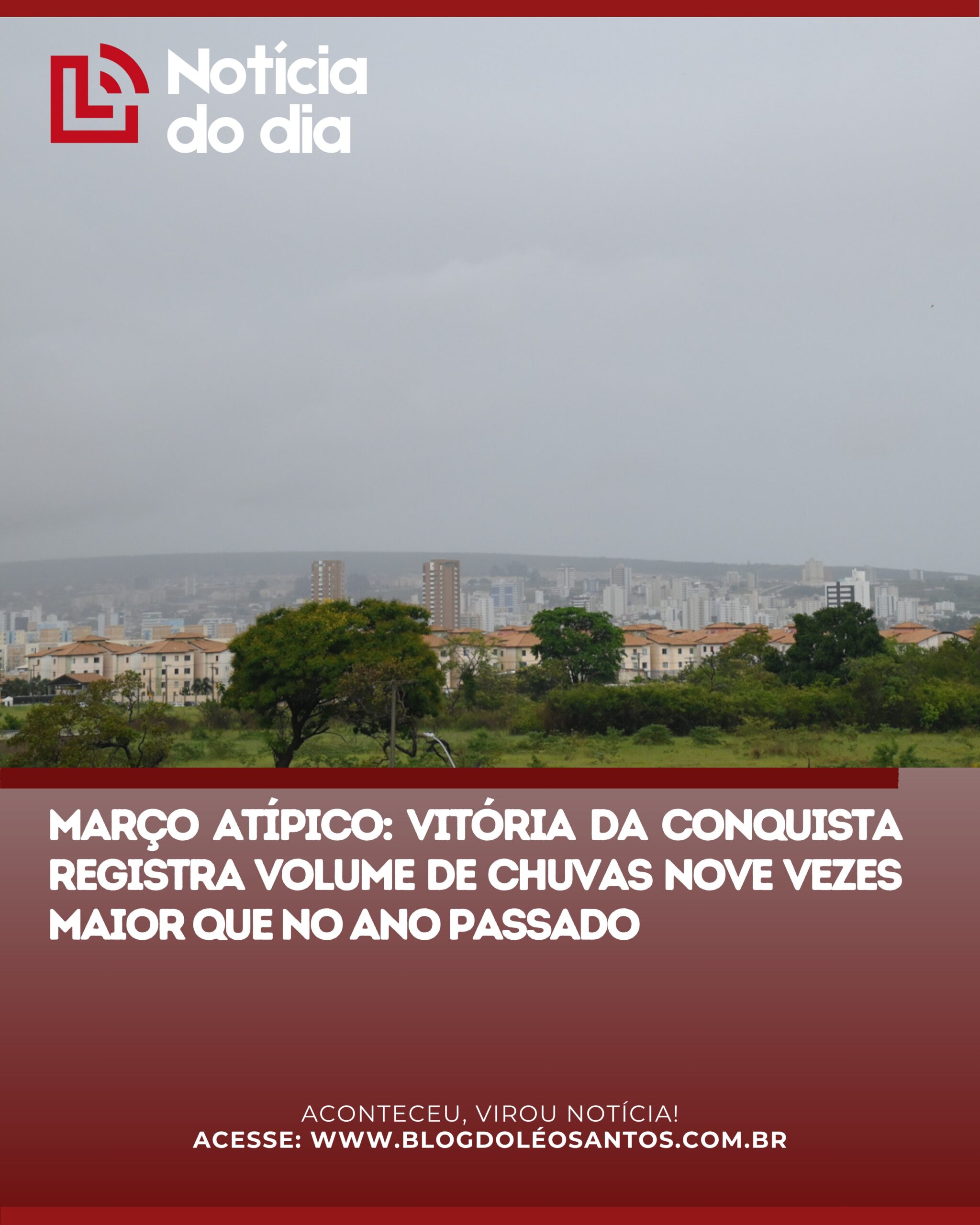 MARÇO ATÍPICO: VITÓRIA DA CONQUISTA REGISTRA VOLUME DE CHUVAS NOVE VEZES MAIOR QUE NO ANO PASSADO