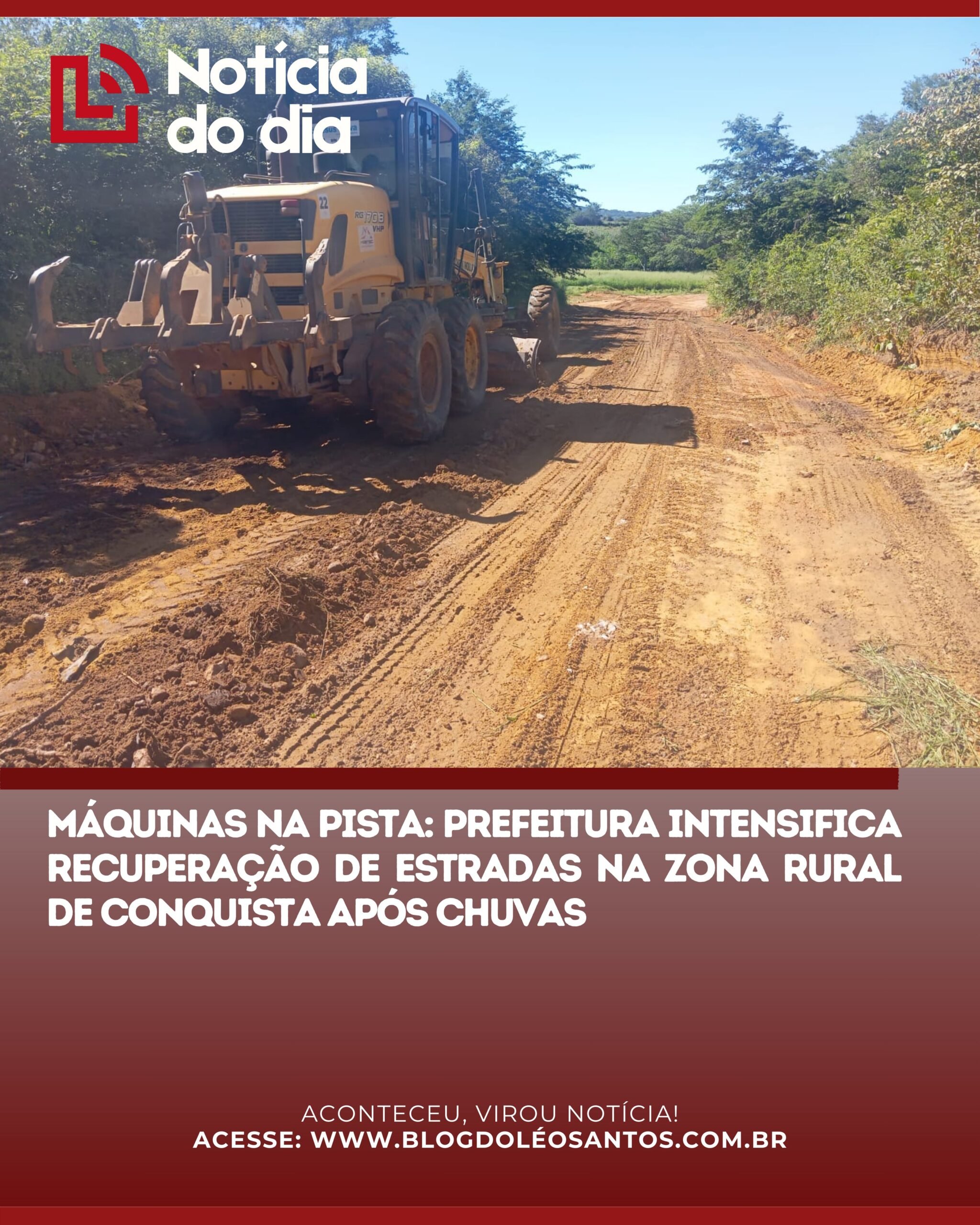 A Prefeitura de Vitória da Conquista, através da Secretaria Municipal de Desenvolvimento Rural (SMDR), iniciou uma verdadeira força-tarefa para recuperar as estradas da zona rural após o período de chuvas intensas registrado no mês de fevereiro. O objetivo principal da gestão é assegurar o direito de ir e vir da população, restabelecendo a mobilidade e o acesso seguro aos distritos e povoados, com atenção especial ao transporte dos alunos.