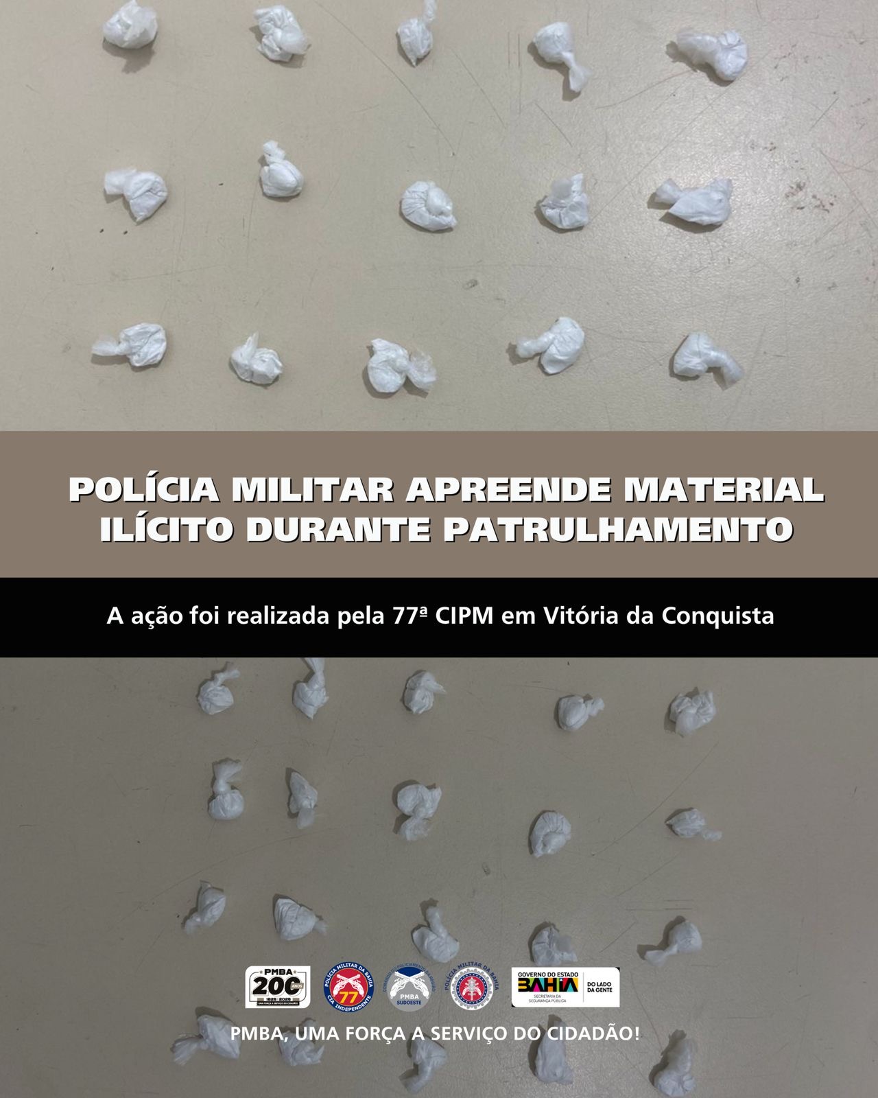 A Polícia Militar segue atenta ao combate ao tráfico de drogas em Vitória da Conquista. Na noite deste domingo (07), por volta das 23h, uma guarnição do PETO da 77ª CIPM realizou uma apreensão de entorpecentes na Avenida Juracy Magalhães.