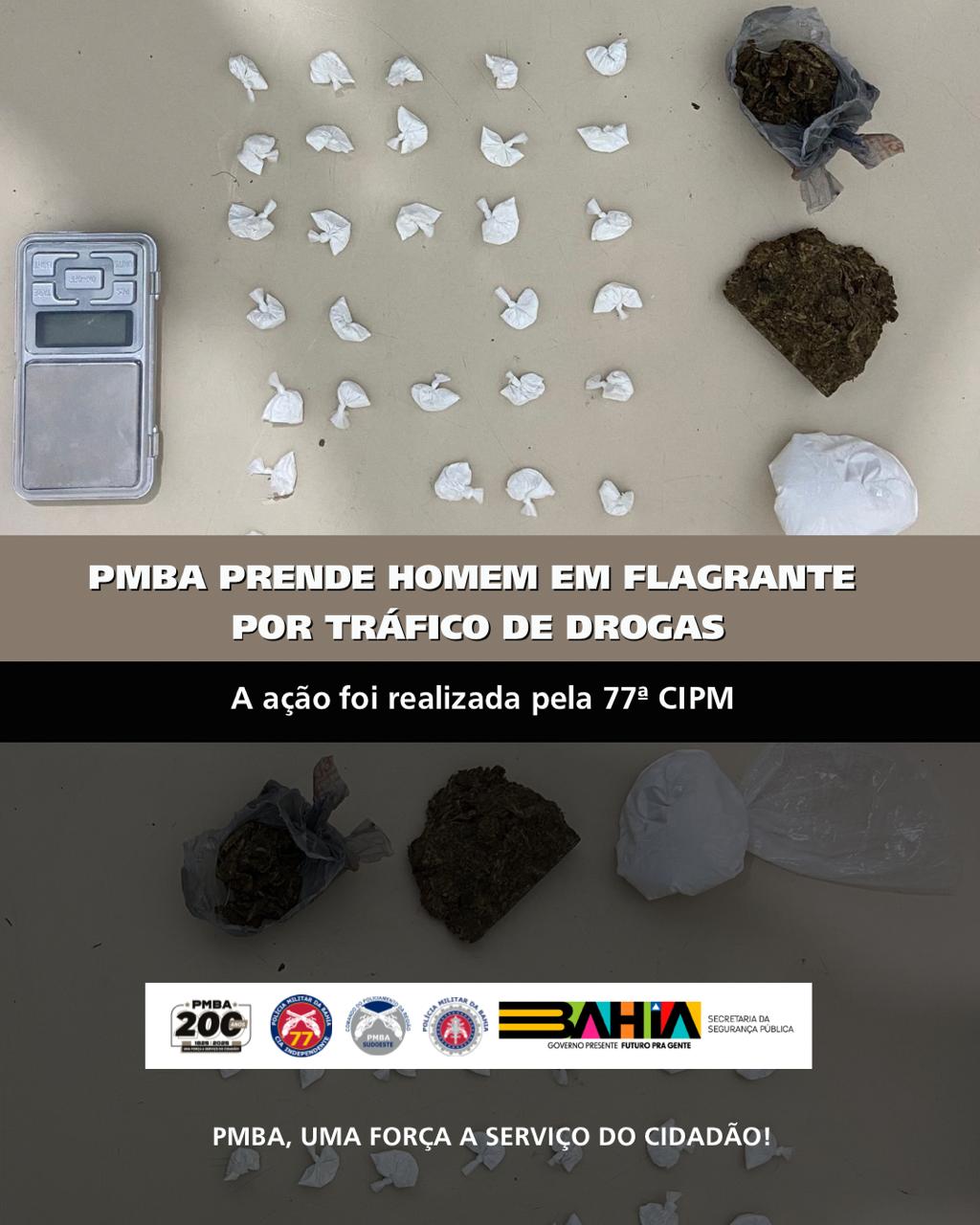 A Operação Guardião Noturno segue fechando o cerco contra a criminalidade em Vitória da Conquista. Na madrugada desta quarta-feira (08), por volta da 1h, policiais do PETO da 77ª CIPM prenderam um homem de 24 anos suspeito de tráfico de drogas.